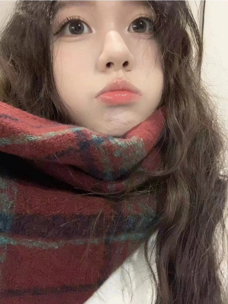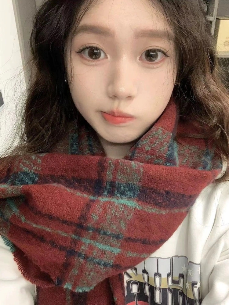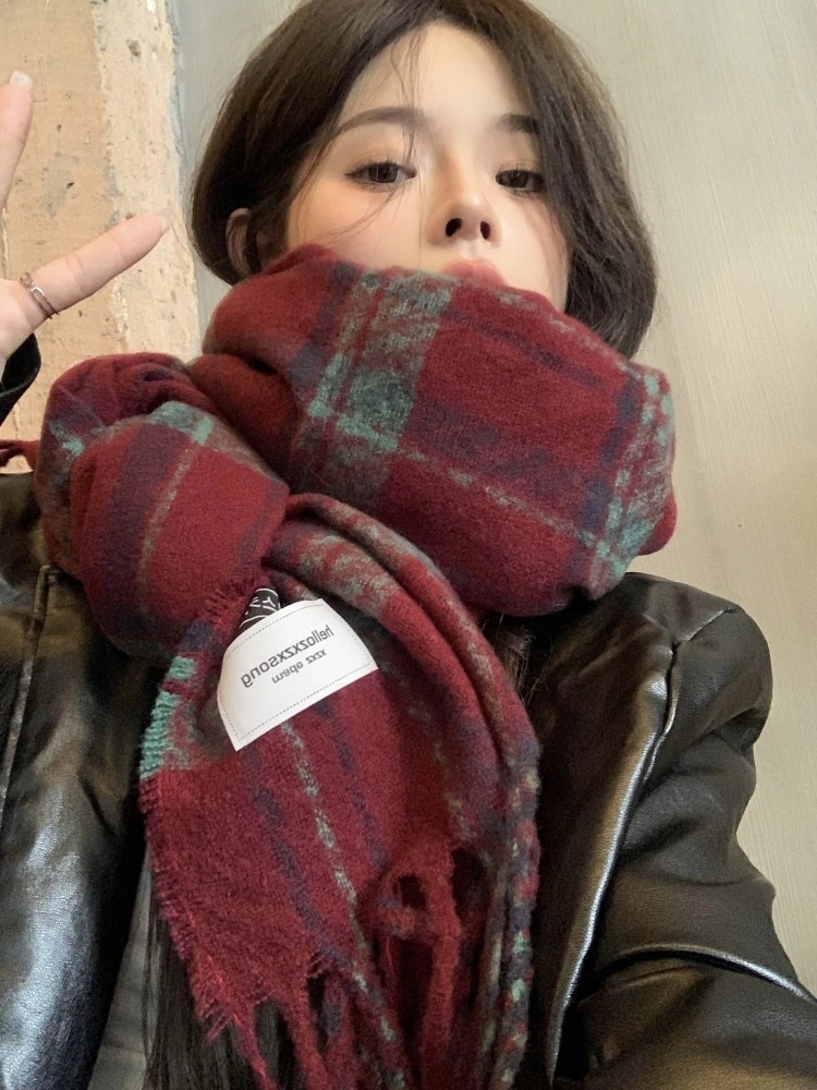 2024 人気 新作フリンジレッドのレトロなチェックスカーフ冬の暖かさ百合高級感ストール学生カップル マフラー