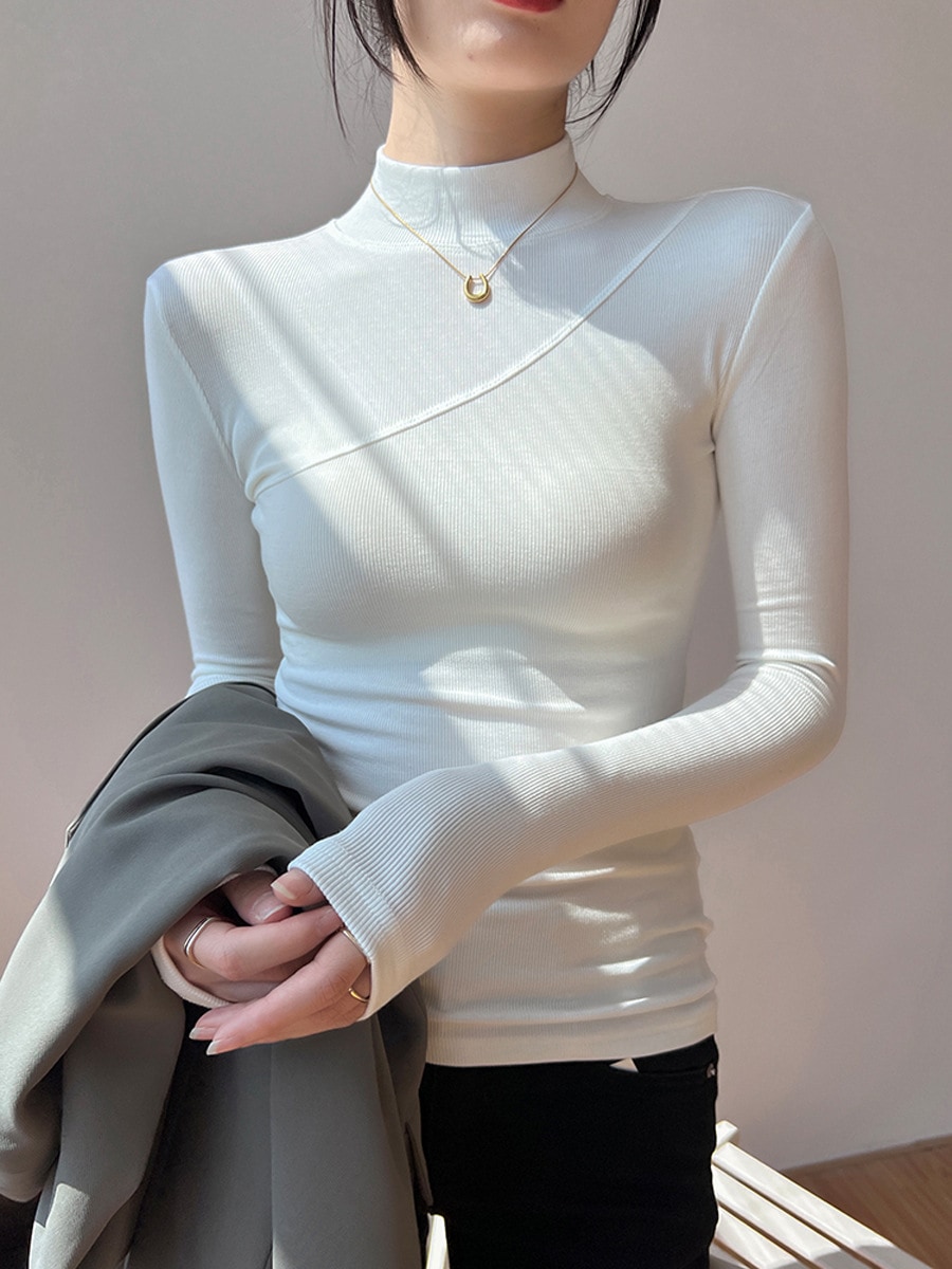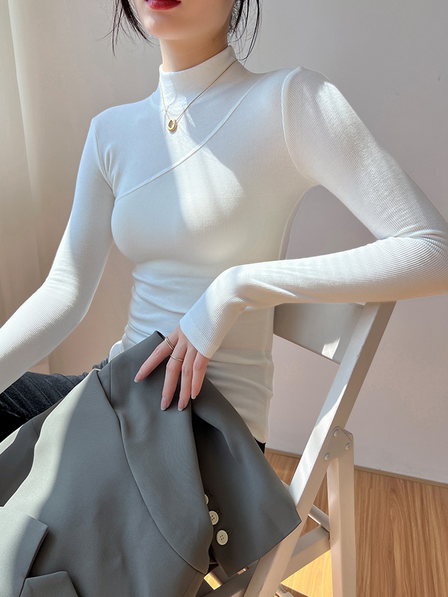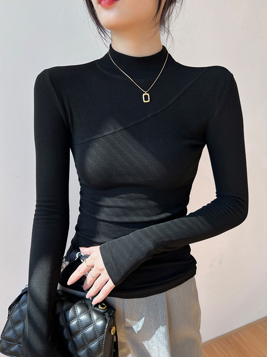 ハーフハイネックボトムシャツ女性2024秋冬新作インナータイト長袖ブラウス チュニック