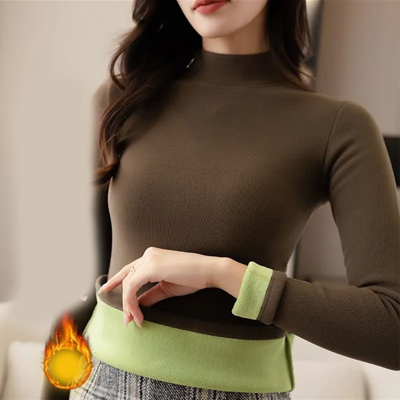 裏起毛 タートルネック ニット レディース トップス 秋冬 長袖 リブ袖 カットソー インナー シンプル フィット 暖かい 厚手 防寒 起毛