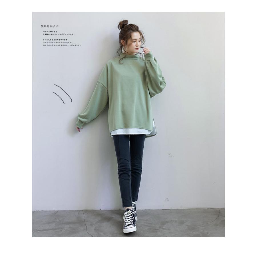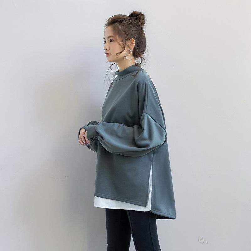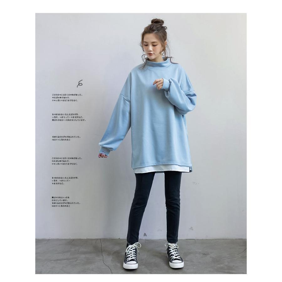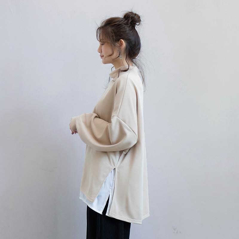 Tシャツパーカー裏起毛ブラウスゆったり 長袖春秋冬用無地シンプル通勤韓国ファンショントップス Tシャツ カットソー