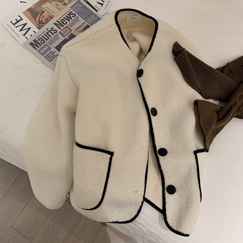 チェスターコート 冬アウター 韓国ファッション ラウンドネック ラムズフリース アウター レディース 秋冬 韓版 ゆったり 小柄 ショート トップス