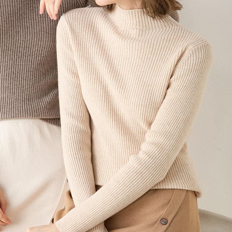 韓国ファッション ニット カシミヤタッチ トップス ニット インナー ベーシックニット ゆったりスウェット リブニット ニット