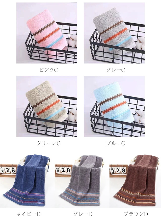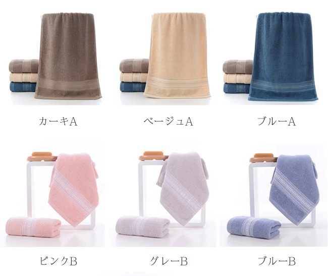 タオル フェイスタオル 2枚セット まとめ買い 34x74cm 厚手タオル 吸水抜群 ふわふわ 新生活応援 大きい 大判 シンプル 可愛い