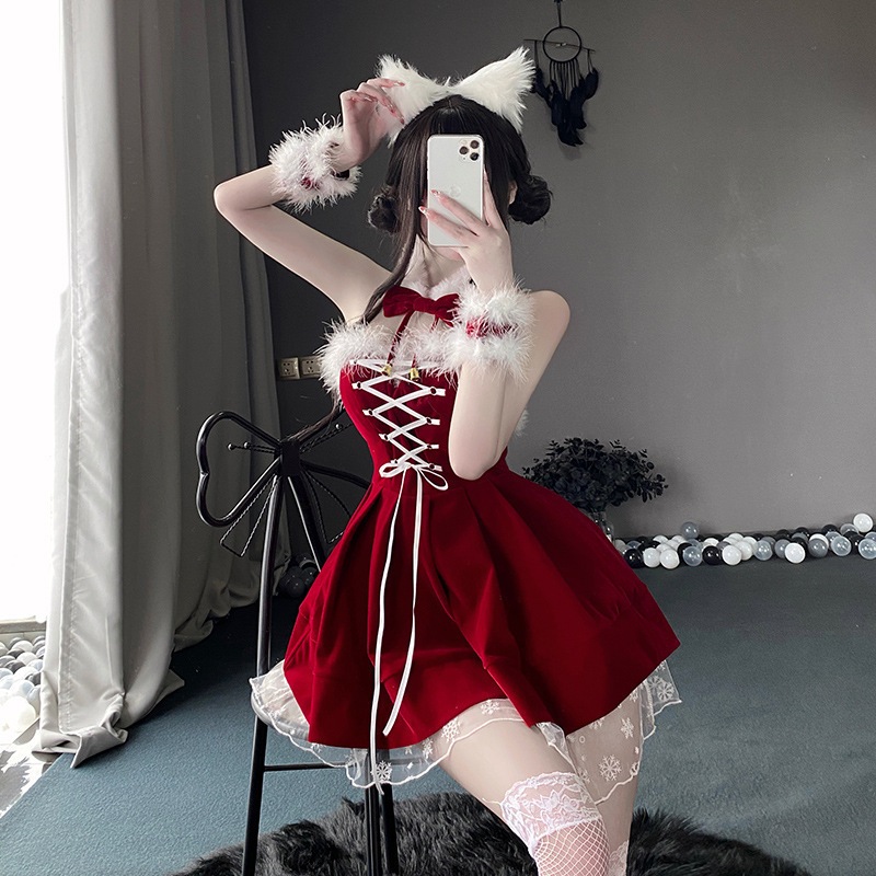 純欲セクシーギャルクリスマスガウン2024秋冬ウエストを収めた痩せたベルベットワンピース雰囲気赤スカート サンタ コスプレ ハロウィン コスプレ メイド服 メガ割 コスプレ ハロウィン
