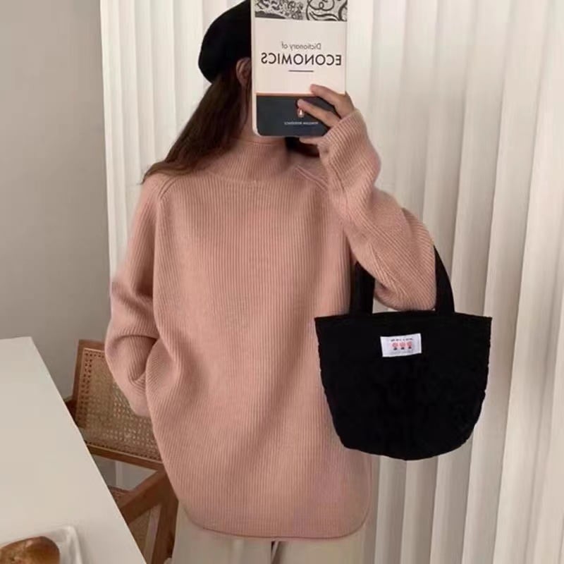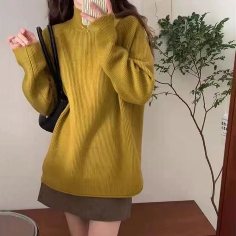 秋冬 ハーフネックセーター レディース 韓国ファッション 快適百掛け ニットトップス 無地 シンプル ゆったり ニットセーター 体型カバーベーシックニット