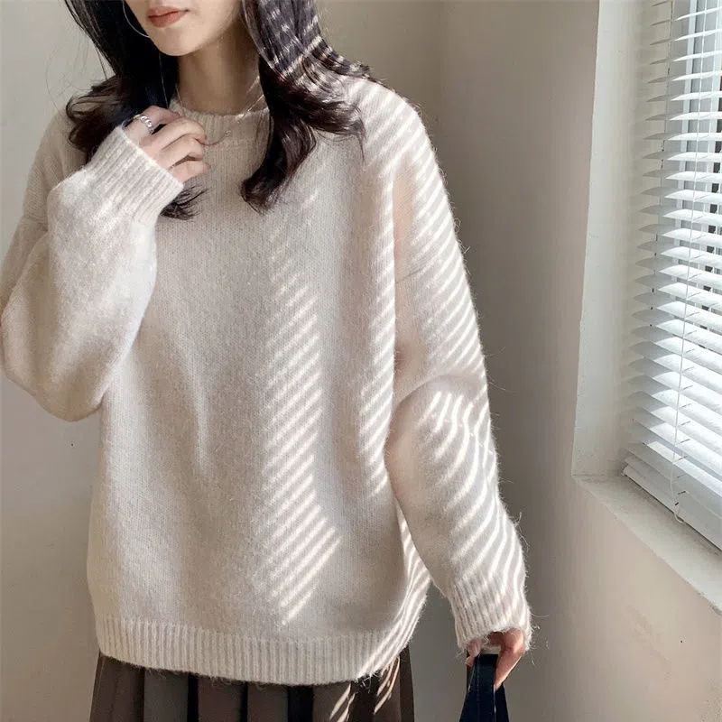 流行り 韓国ファッション 怠惰な風 ブルーニットセーター レディース カジュアル百掛け ニットトップス 冬 暖かいゆったり カジュアル ベーシックニット
