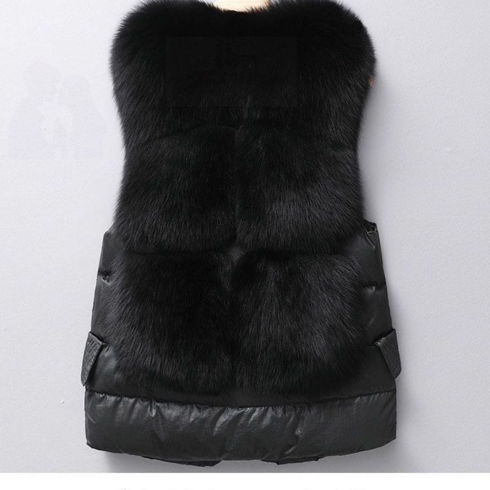 新しい ベスト フェイク フォックスファー ショート丈ダウンジャケット 保温 ファーアウター ベスト