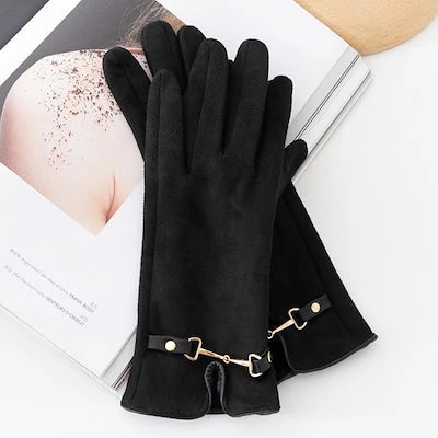 手袋指先スリットスエード手袋スマホ対応指先が出る5本指てぶくろブラックグローブリボン ニット手袋