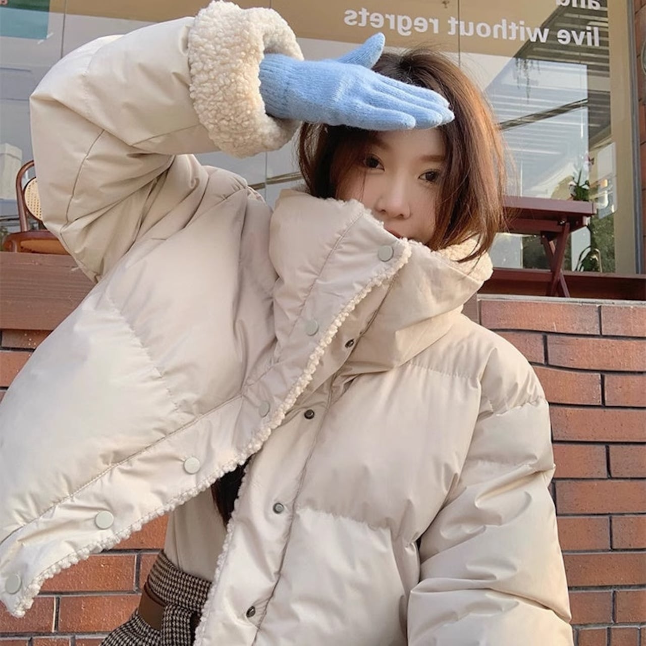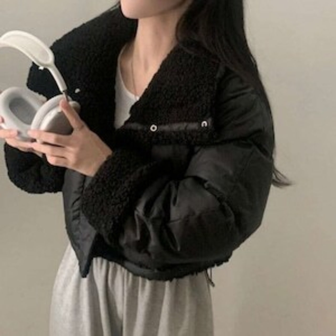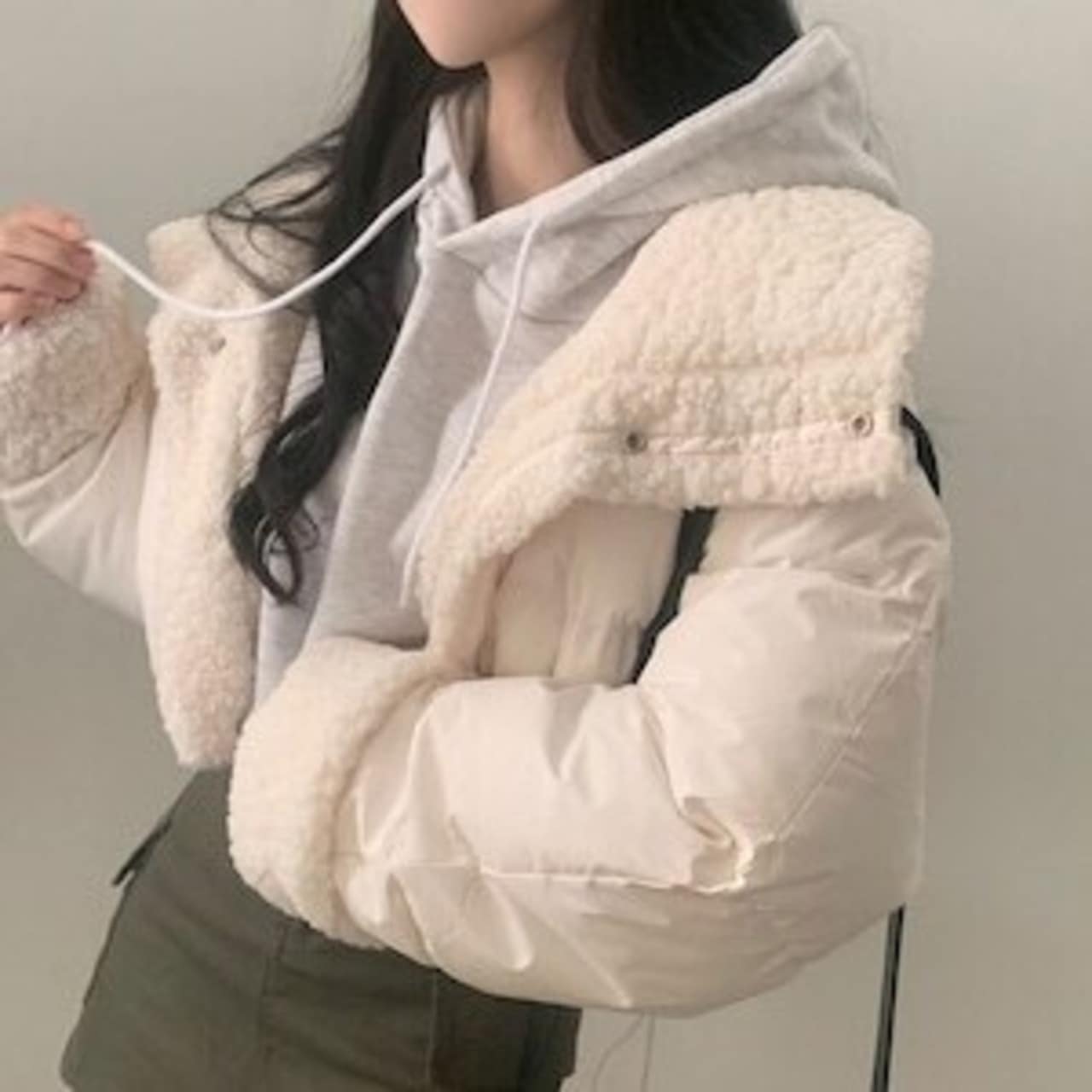 リバーシブル ボアジャケット レディース 韓国 ファッション 2way 中綿 ナイロン ボア 裏表 アウター ノーカラージャケット
