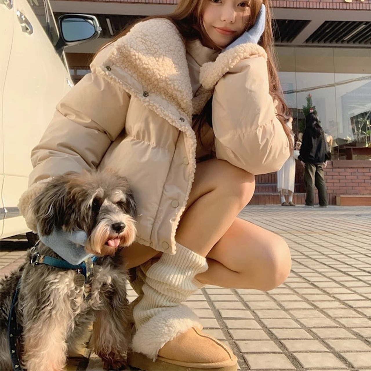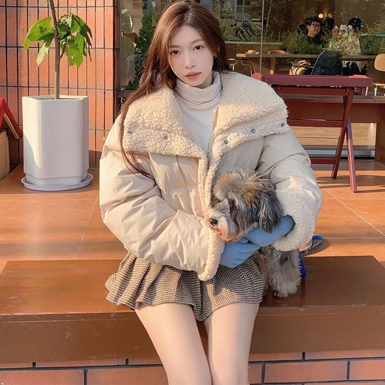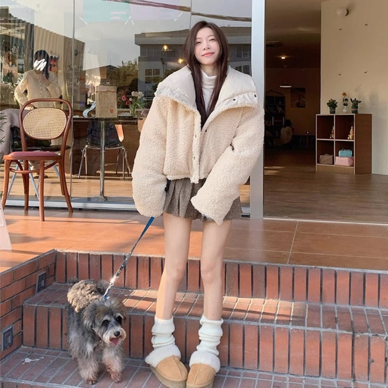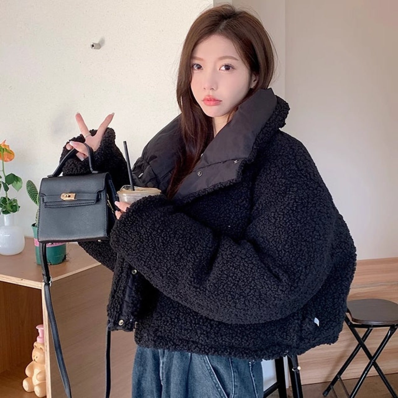 リバーシブル ボアジャケット レディース 韓国 ファッション 2way 中綿 ナイロン ボア 裏表 アウター ノーカラージャケット