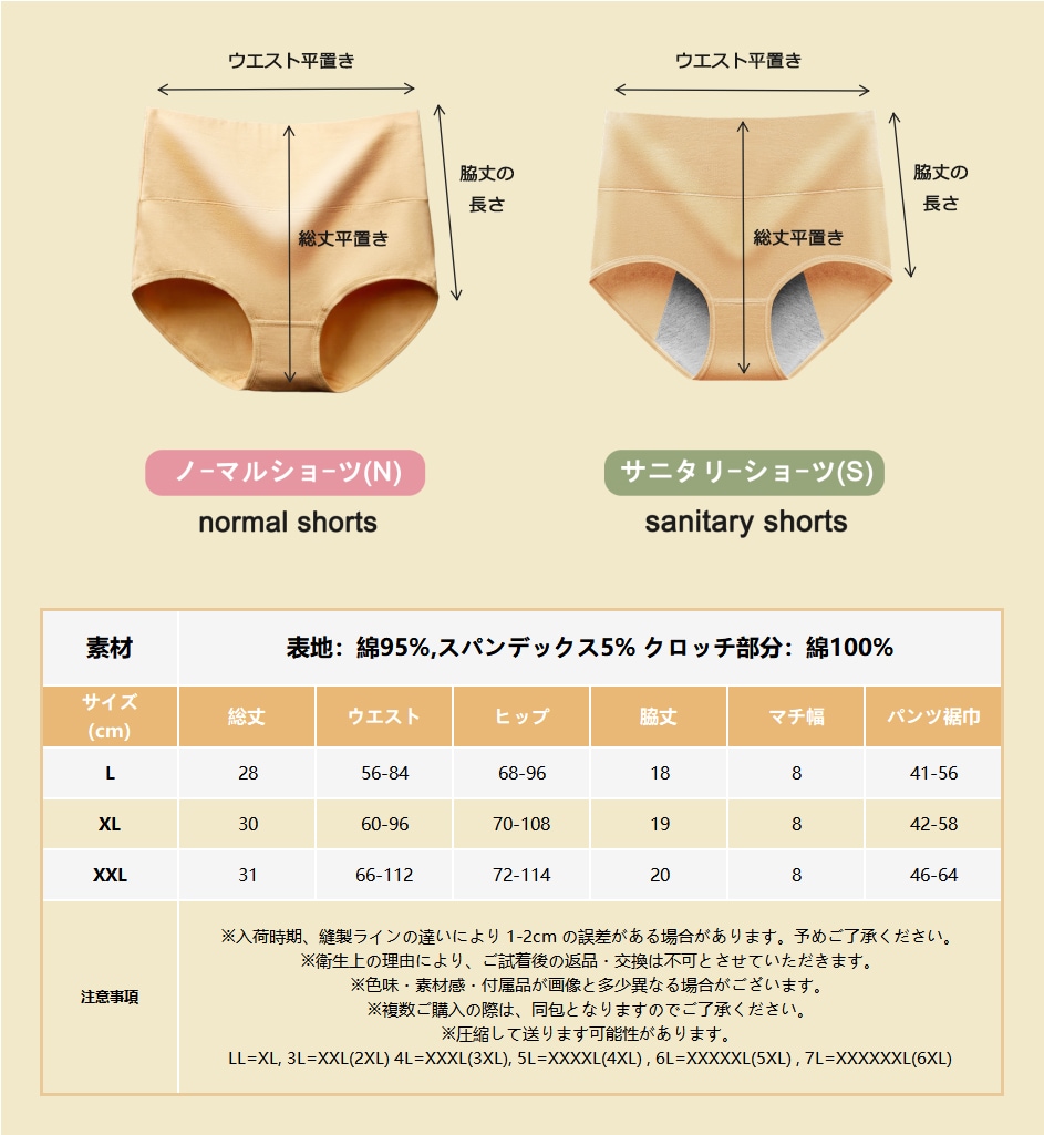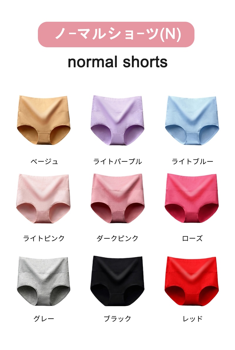 カラー: ブラック、グレー、ベージュ各1枚(Sサニタリーショーツ) ブラック3枚(Sサニタリーショーツ) ブラック3枚(Nノーマルショーツ) ブラック2枚、グレー1枚(Nノーマルショーツ) ブラック、グレー、ベージュ各1枚(Nノーマルショーツ) ブラック、グレー、ライトブルー各1枚(Nノーマルショーツ) グレー、ダークピンク、ベージュ各1枚(Nノーマルショーツ) ライトブルー、ライトピンク、ライトパープル各1枚(Nノーマルショーツ) ランダム色3枚(Nノーマルショーツ)