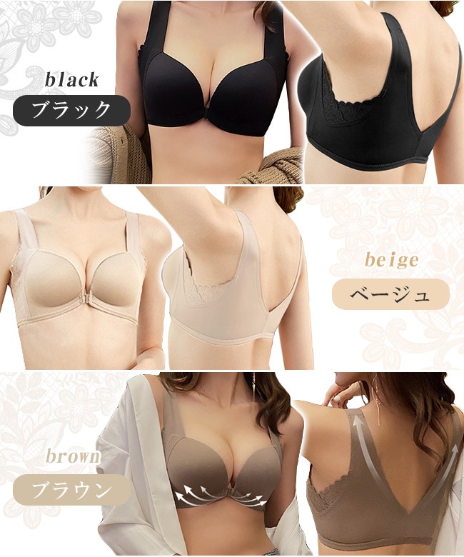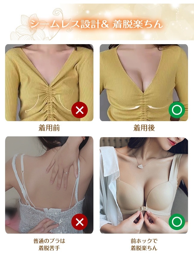 レース ナイトブラ フロントホックブラ ブラジャー スカラップ 美胸 24時間使える バストアップ ノンワイヤー シームレス インナー 下着 ストレスフリー リラックスブラ 前ホック 女性 肌