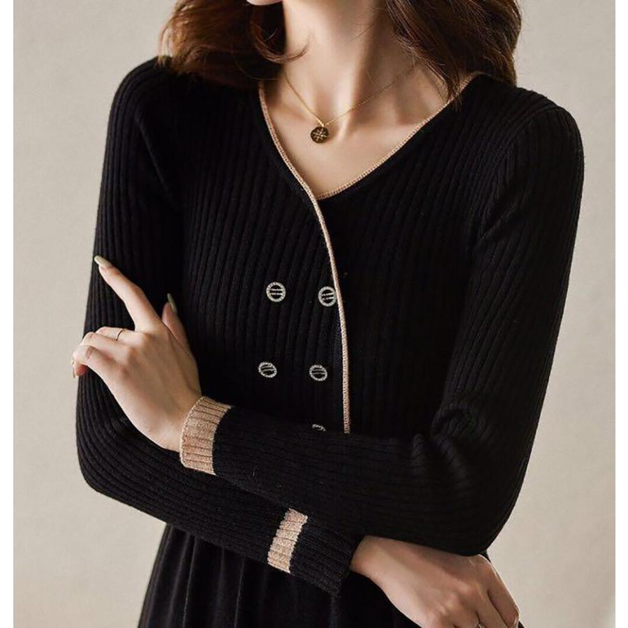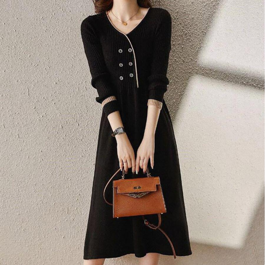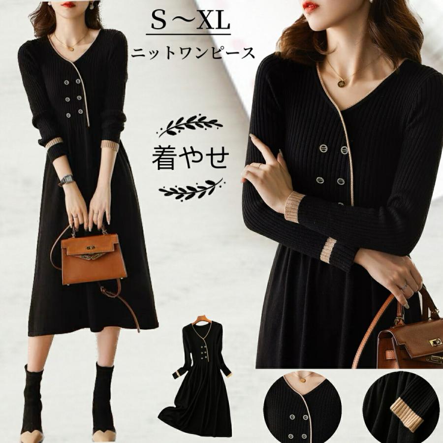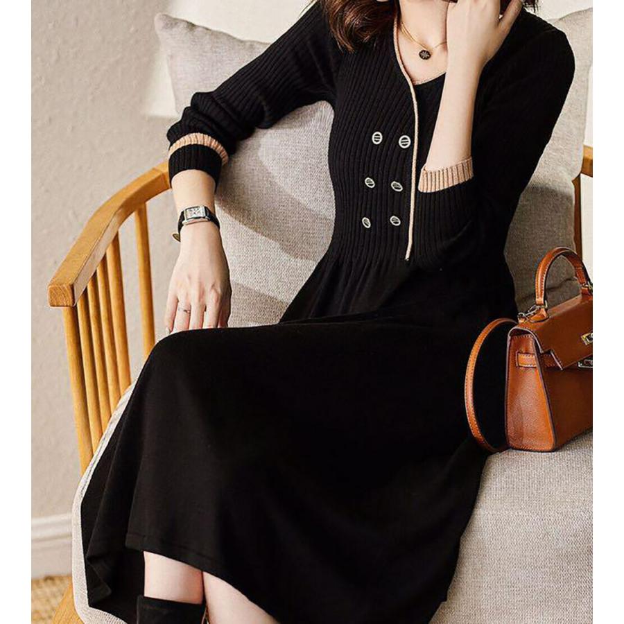 ワンピース レディース ニット フレア フェミニン エレガント オシャレ 綺麗め 清楚系 フォーマル 人気 着痩せ 秋冬コーデ ニットワンピ