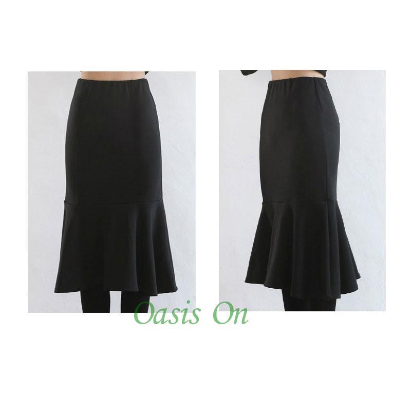 大人の魅力 スカート レディース 膝丈 秋冬 裏起毛 タイトスカート ウエストゴム マーメイド ハイウエスト ブラック 黒 無地 大きいサイズ きれいめ オシャレ