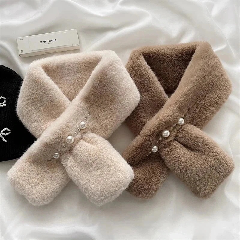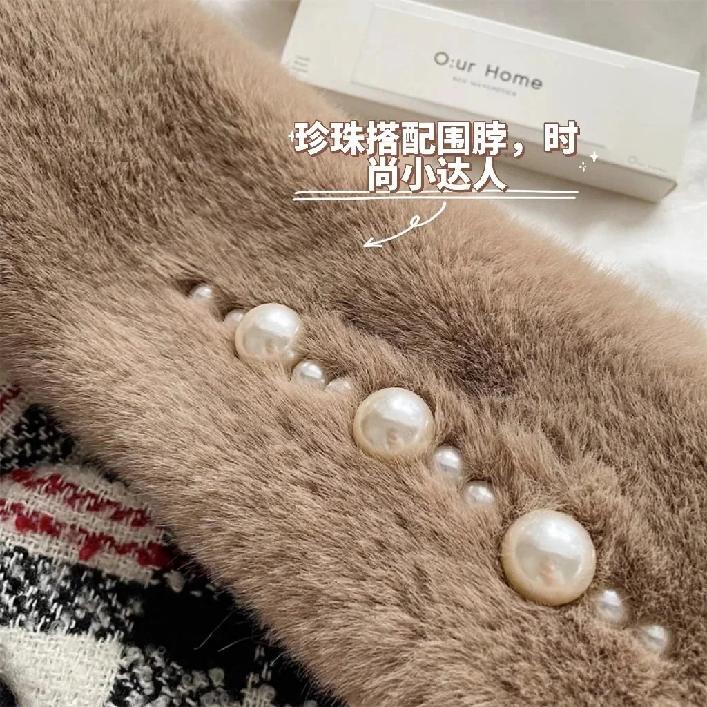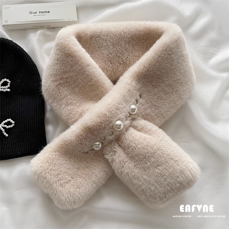 デイリーマフラー追加 暖かぬくぬく毛糸のマフラー韓国版真珠の毛糸のマフラーラッコのウサギの毛のように厚くクロスした毛皮の秋冬の新しいマフラーデイリーマフラー 冬