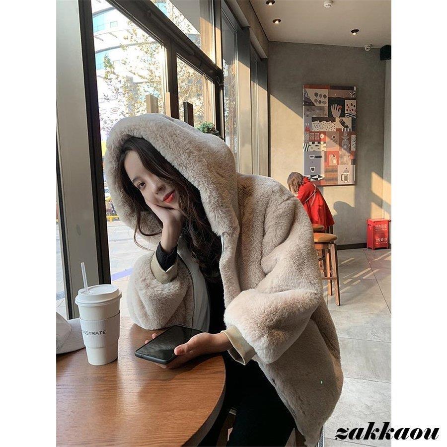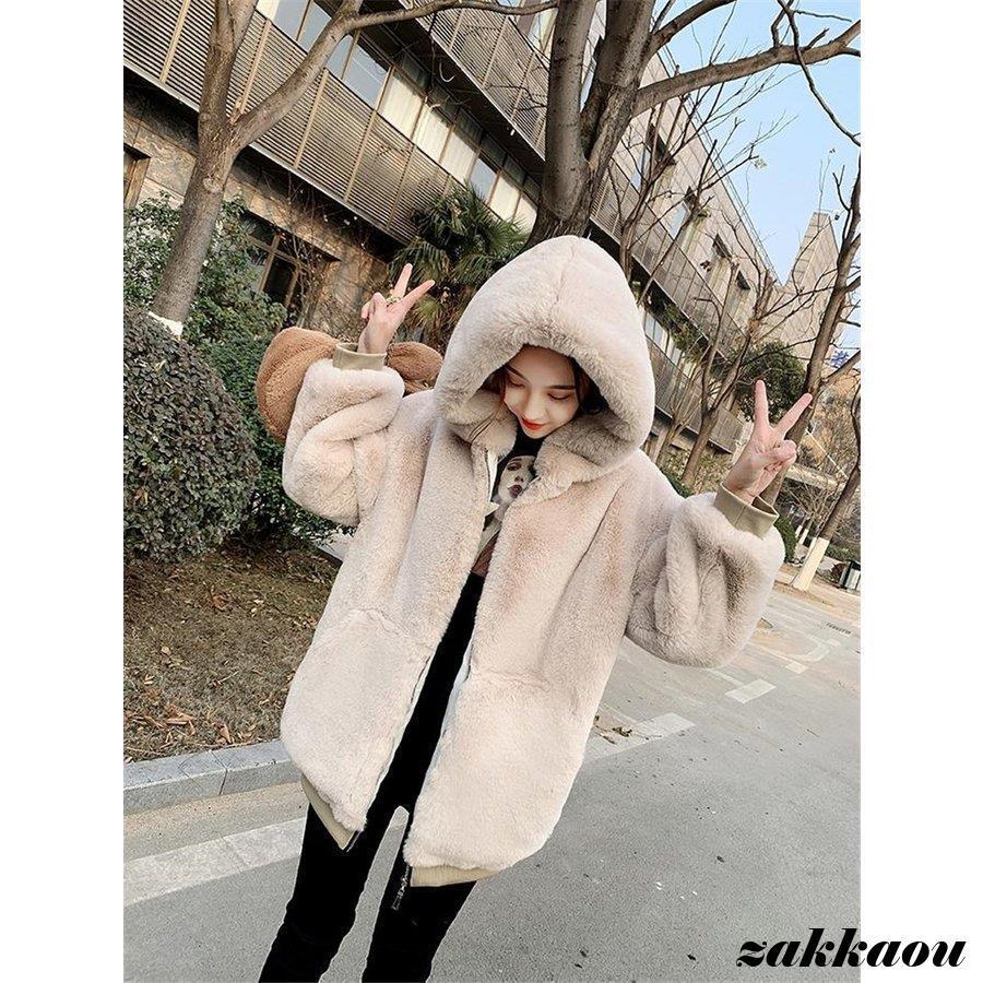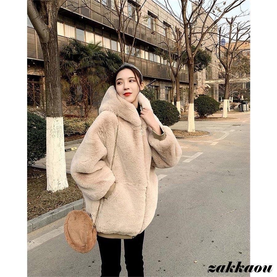 ファーコート レディース ロングコート フェイクファー ボア アウター コート ジャケット 無地 毛皮風 コート ボアコート ゆったり 防寒 フード付き 通勤 30代