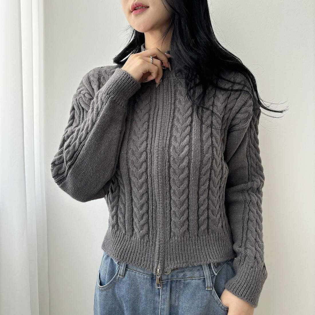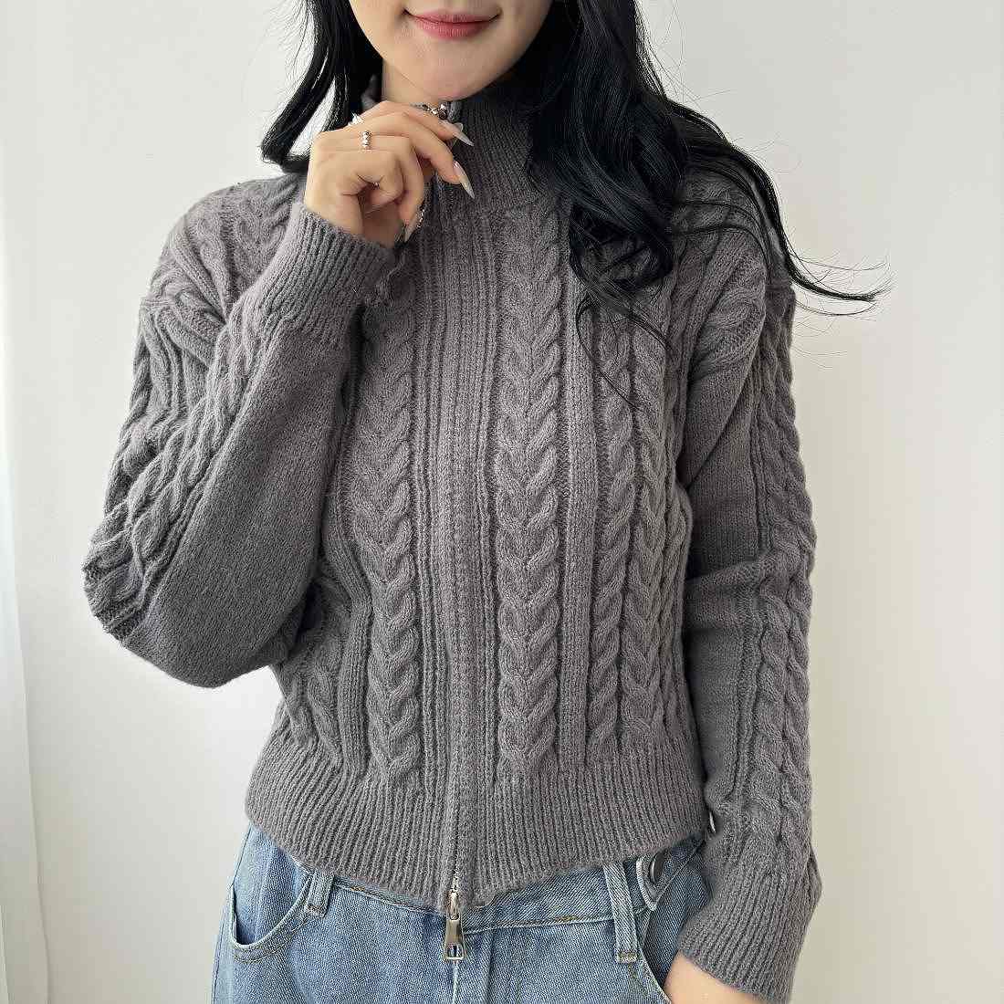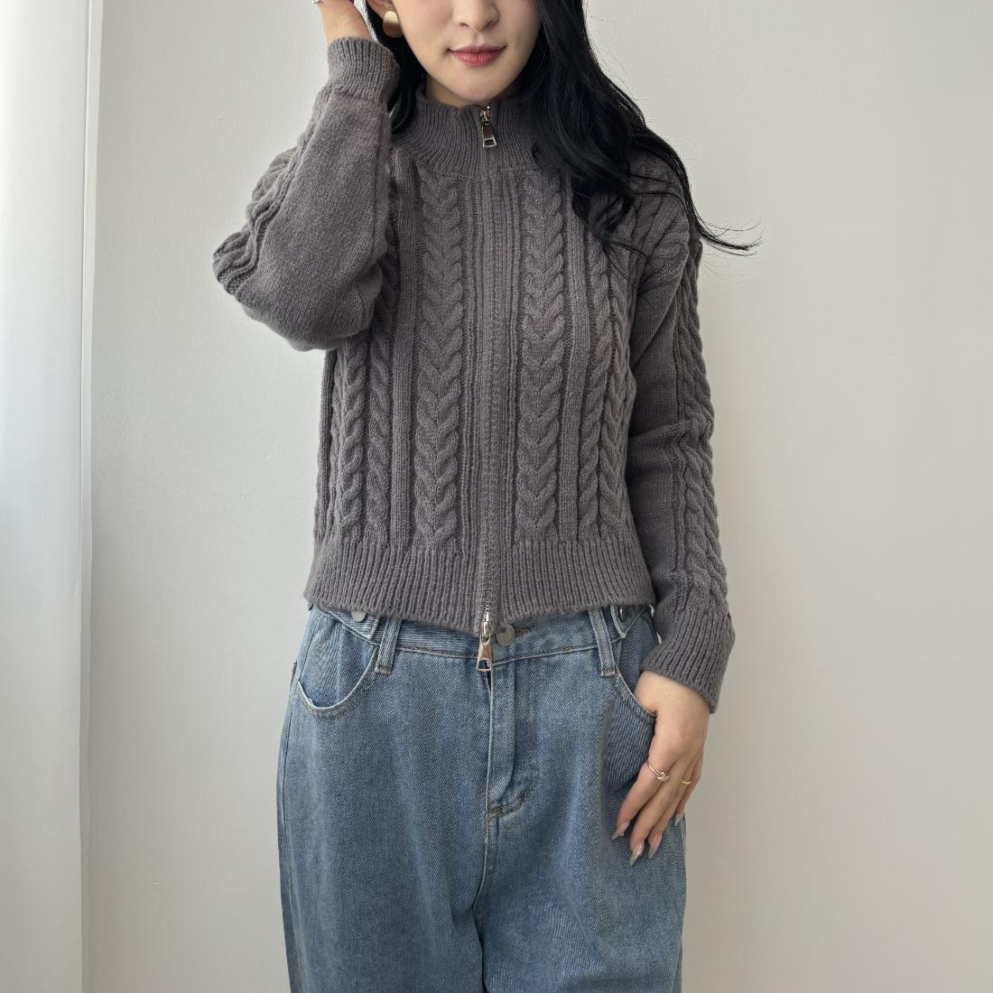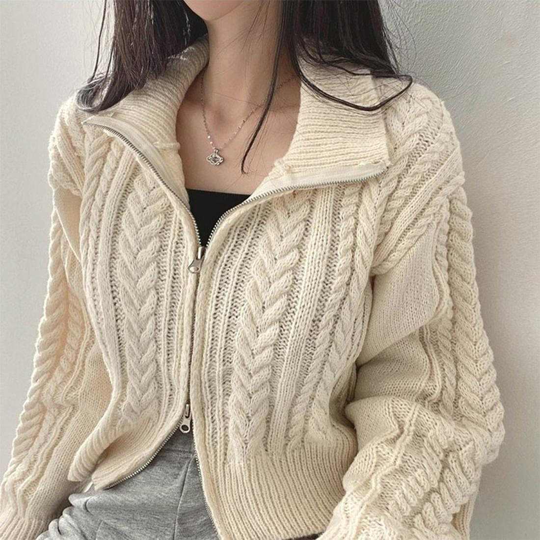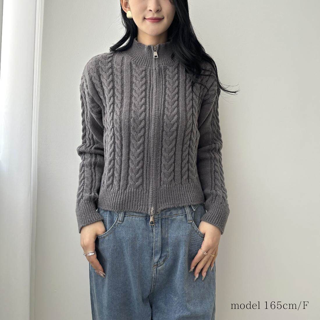 ダブルジップのショート丈ニット ケーブルニット ニット ショート丈 ダブルジップ レイヤード シンプル カジュアル おしゃれ レディース 秋冬冬冬 ロングシーズン デイリー おでかけ