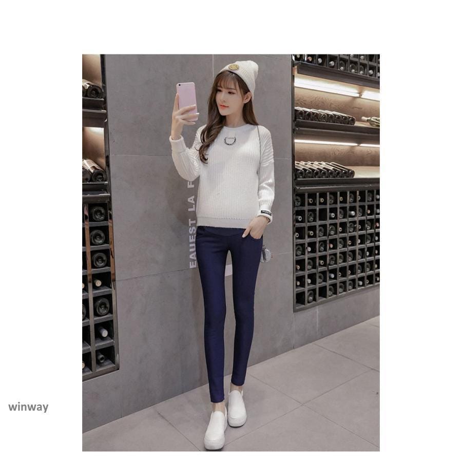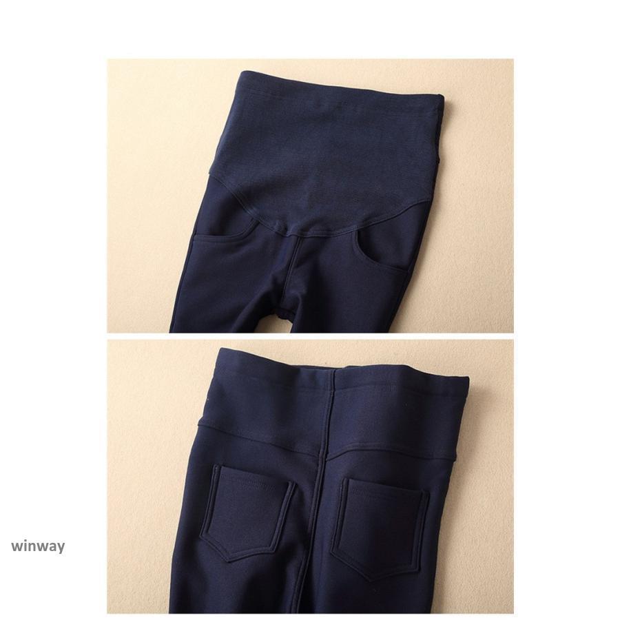 マタニティパンツ 裏起毛 冬物 妊婦 妊娠 後期 ストレッチパンツ ボトムス 長ズボン アジャスター 黒 デニムブルー その他 パンツ