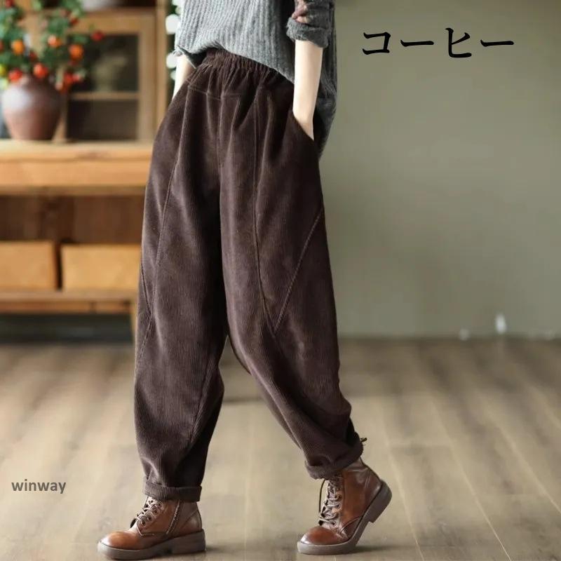 パンツ レディース ロングパンツ 裏起毛 秋冬 テーパードパンツ 無地 ワイドパンツ ボトムス ガウチョ コーデュロイ ウエストゴム 裏ボア 暖かい 防寒 保温