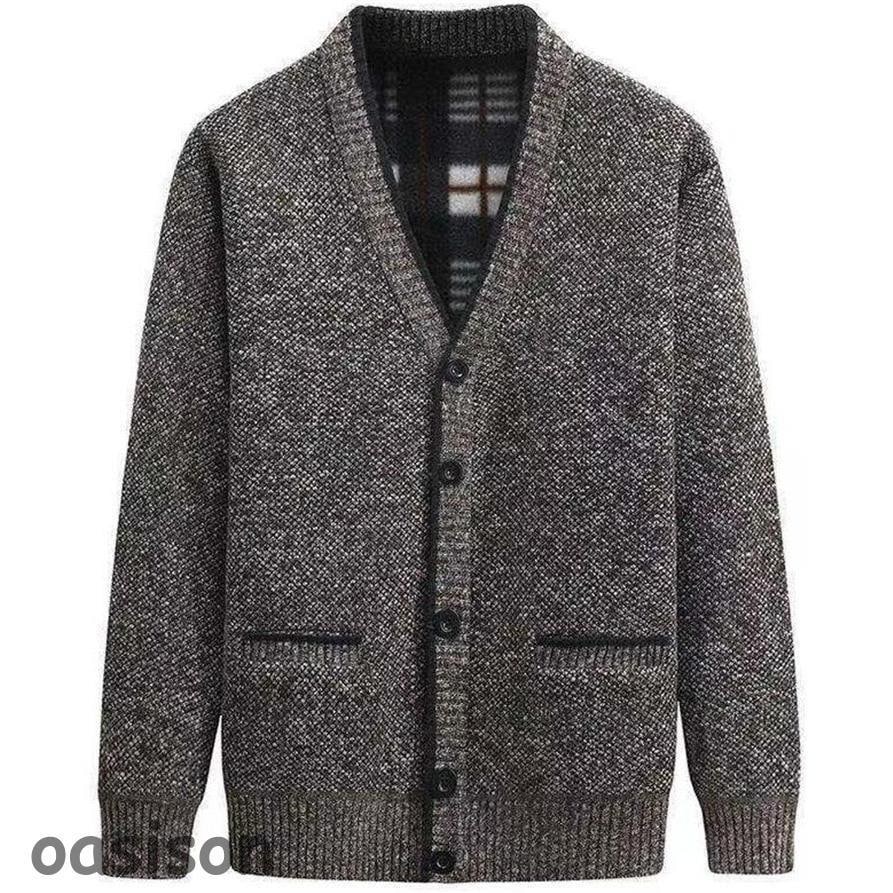 人気商品超目玉 カーディガン メンズ ニットジャケット アウター 裏起毛 羽織 セーター Vネック カジュアル 前開き 無地 着痩 厚手 暖かい 秋冬 通勤 父の日