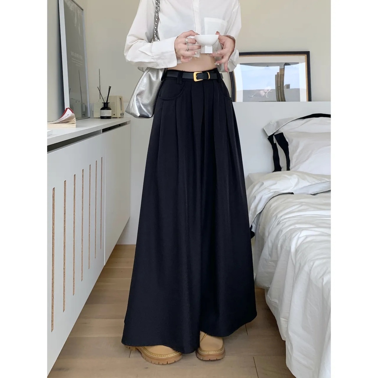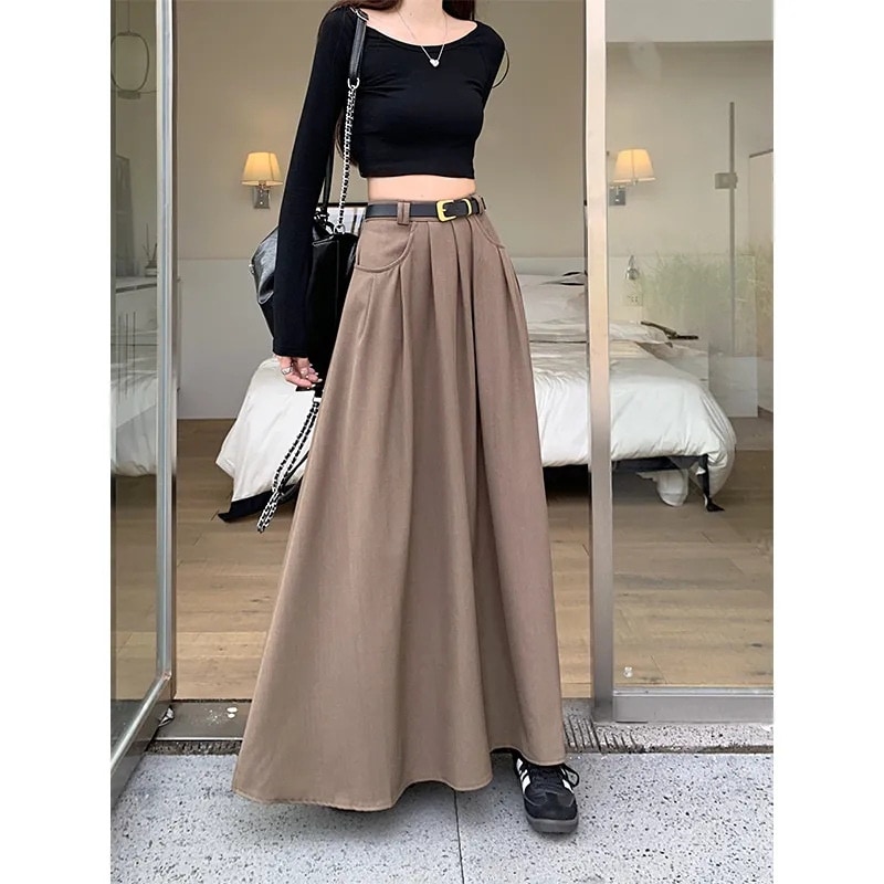Chiロングスーツ半身スカート女性韓版金高腰痩せ傘スカート気質a字スカート ロングスカート