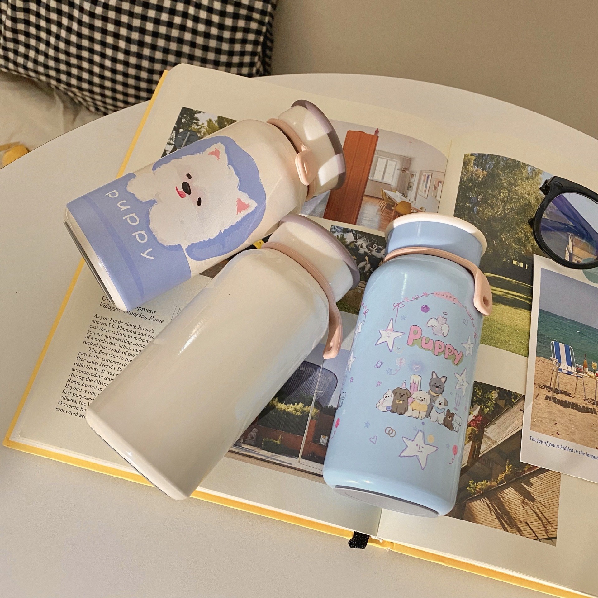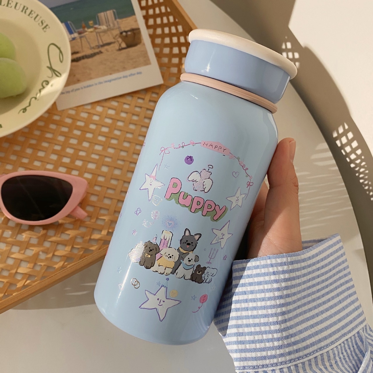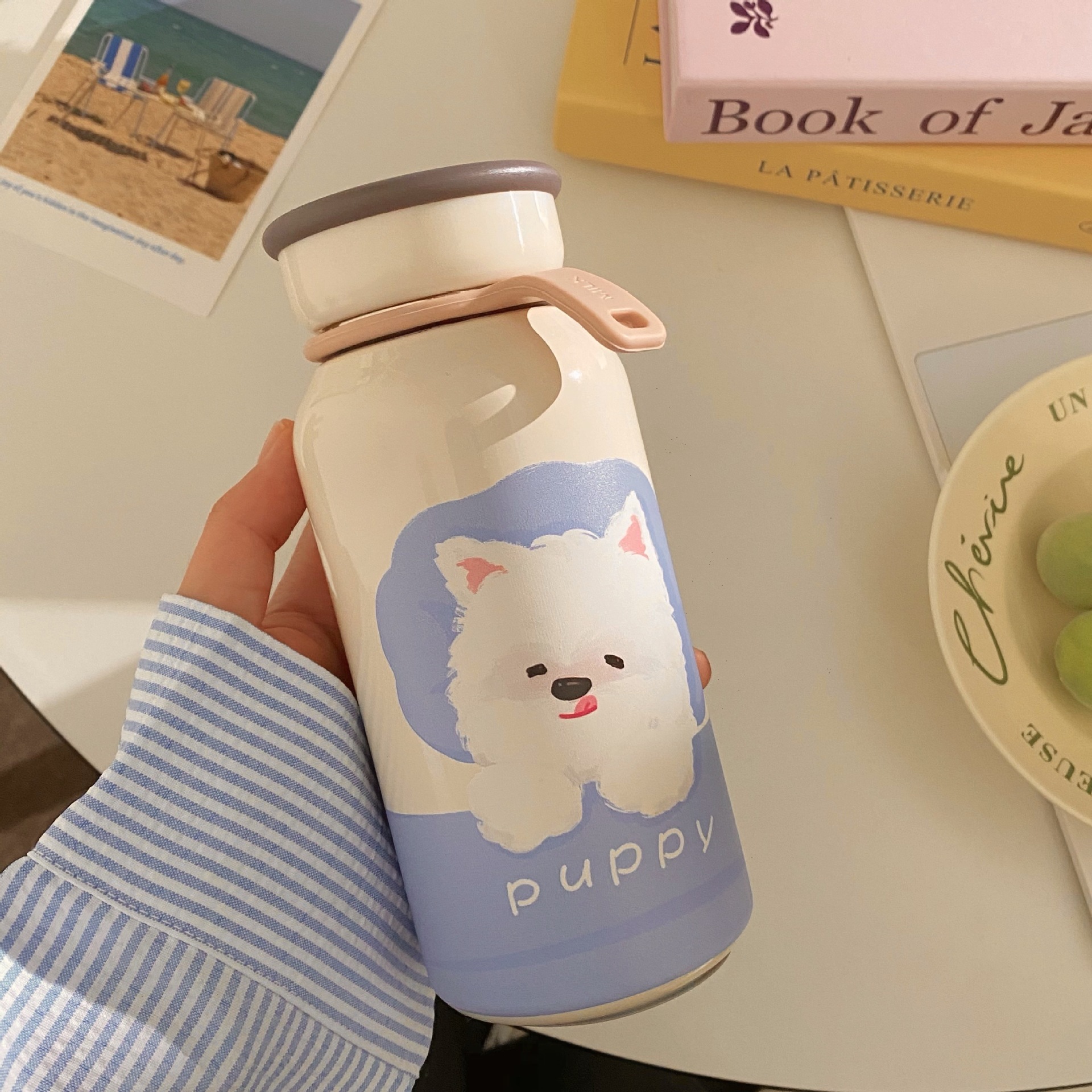 かわいい漫画子犬保温カップ高颜値女子ステンレスカップ携帯付きカップコップ タンブラー