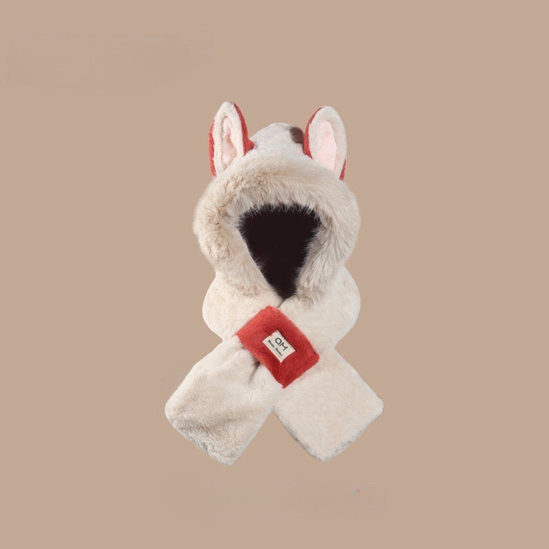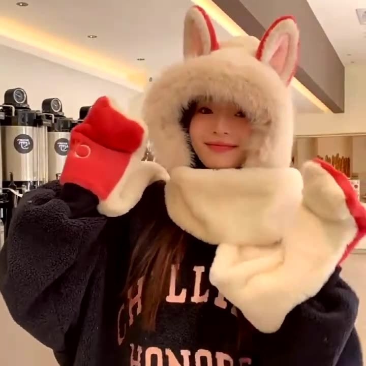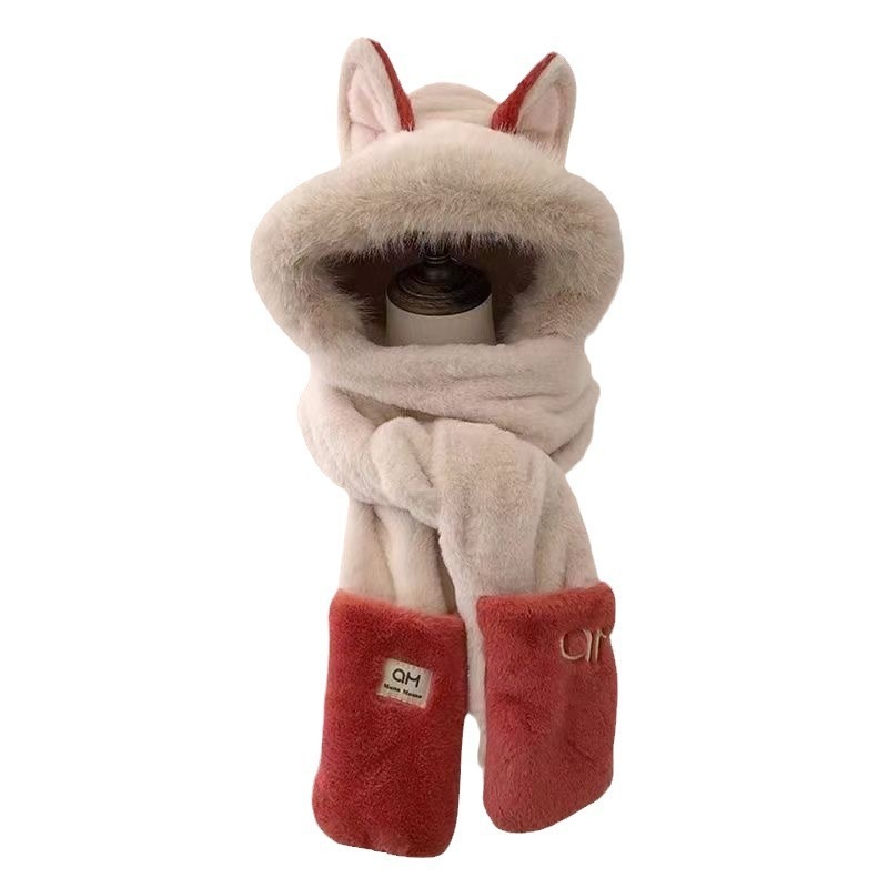 冬用の可愛いキツネ耳つきモヘア帽子とスカラフ手袋がセットで加わった毛が厚く暖かい保温性な防寒帽です 耳あて イヤーマフラー