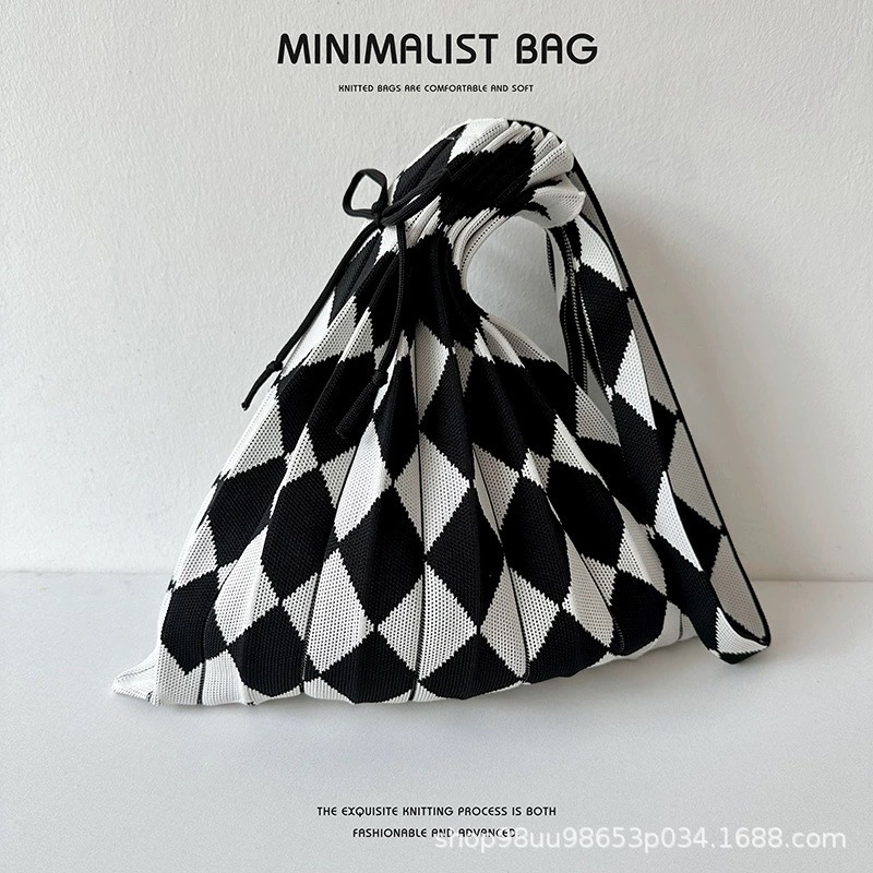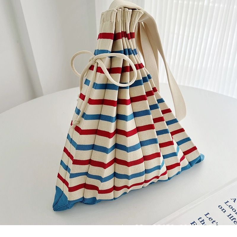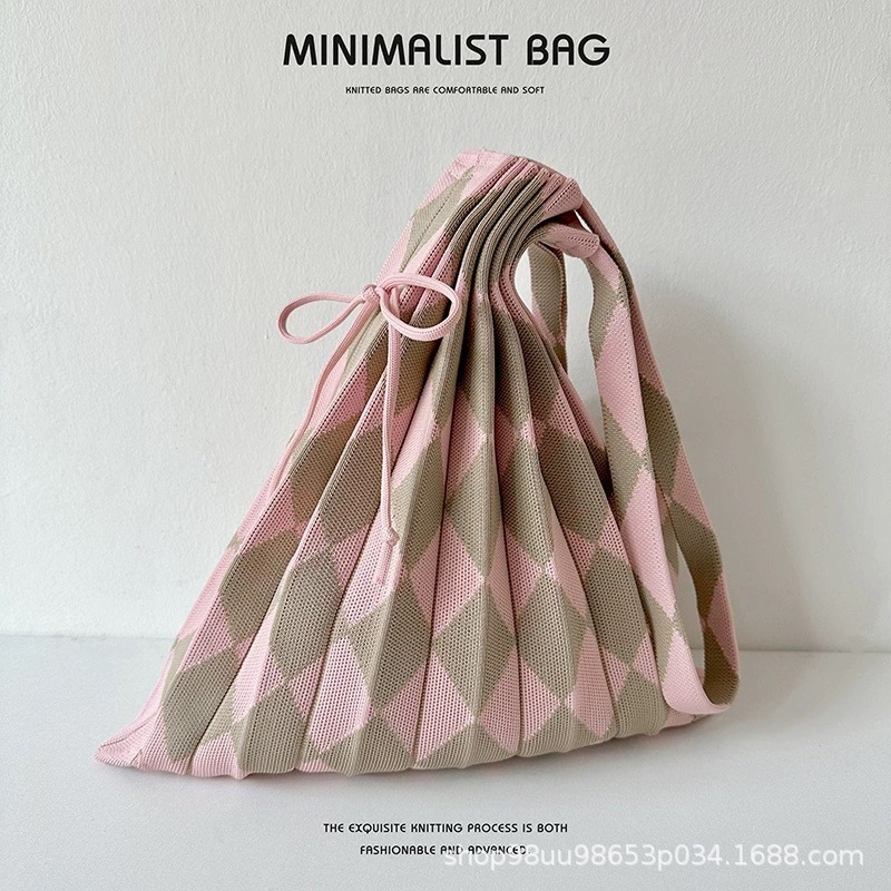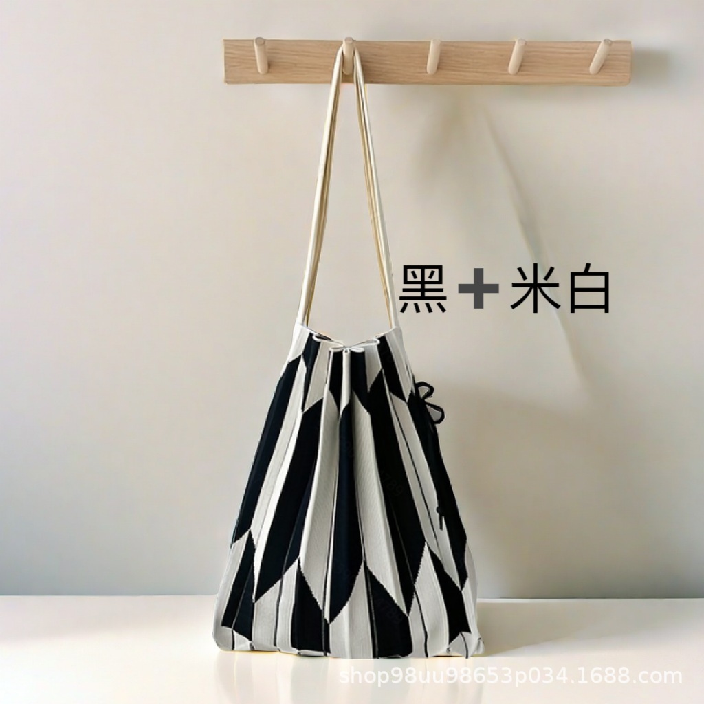 2025 エコバッグ 大容量 ニット折り畳みバッグ 鮮やかカラー デイリー 虹のしわ サブバッグ ハンドバッグ シングルバッグ コンパ トートバック 韓国ファッション