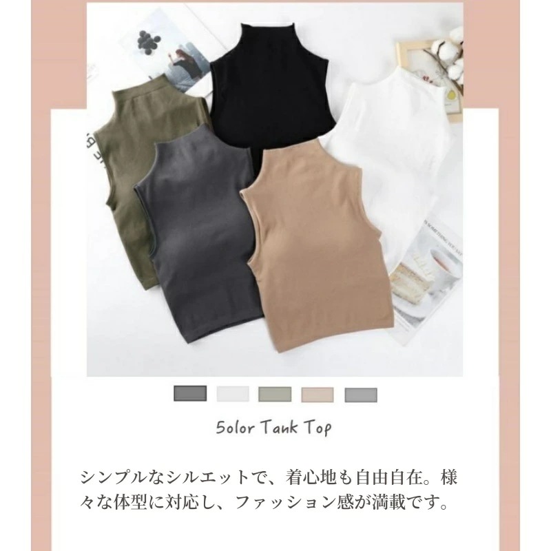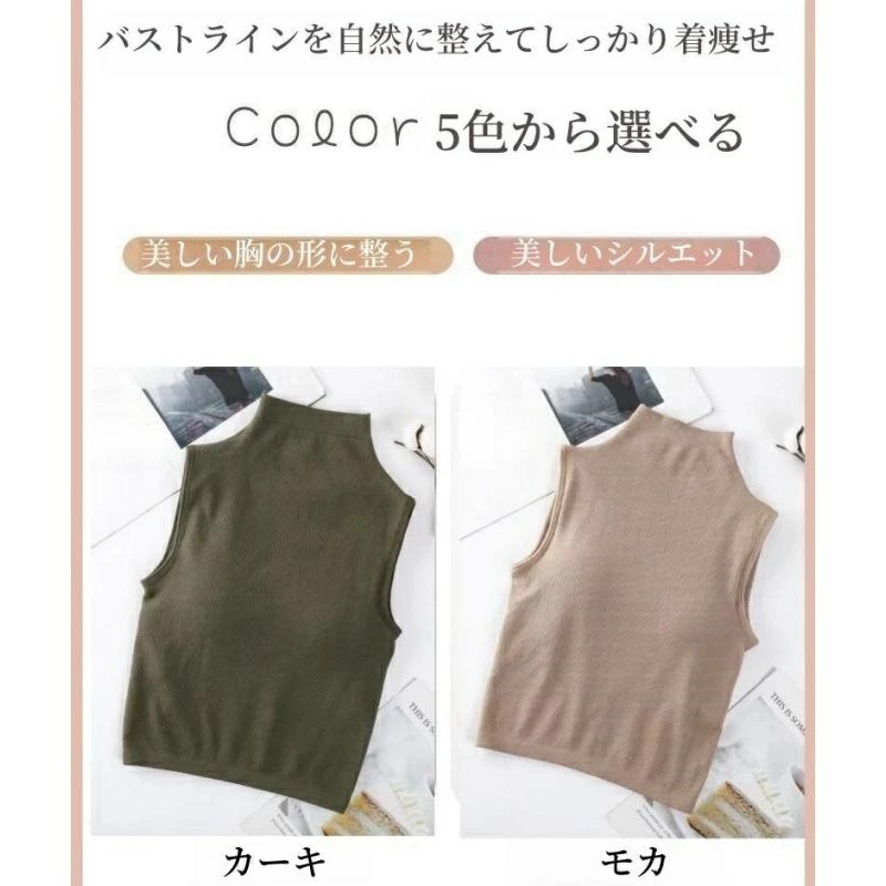 ハイネック ノースリーブ タートルネック タンクトップ 袖なし レディース Tシャツ カットソー インナー メッシュ パワーネット オシャレインナー ブラ付き 韓国風