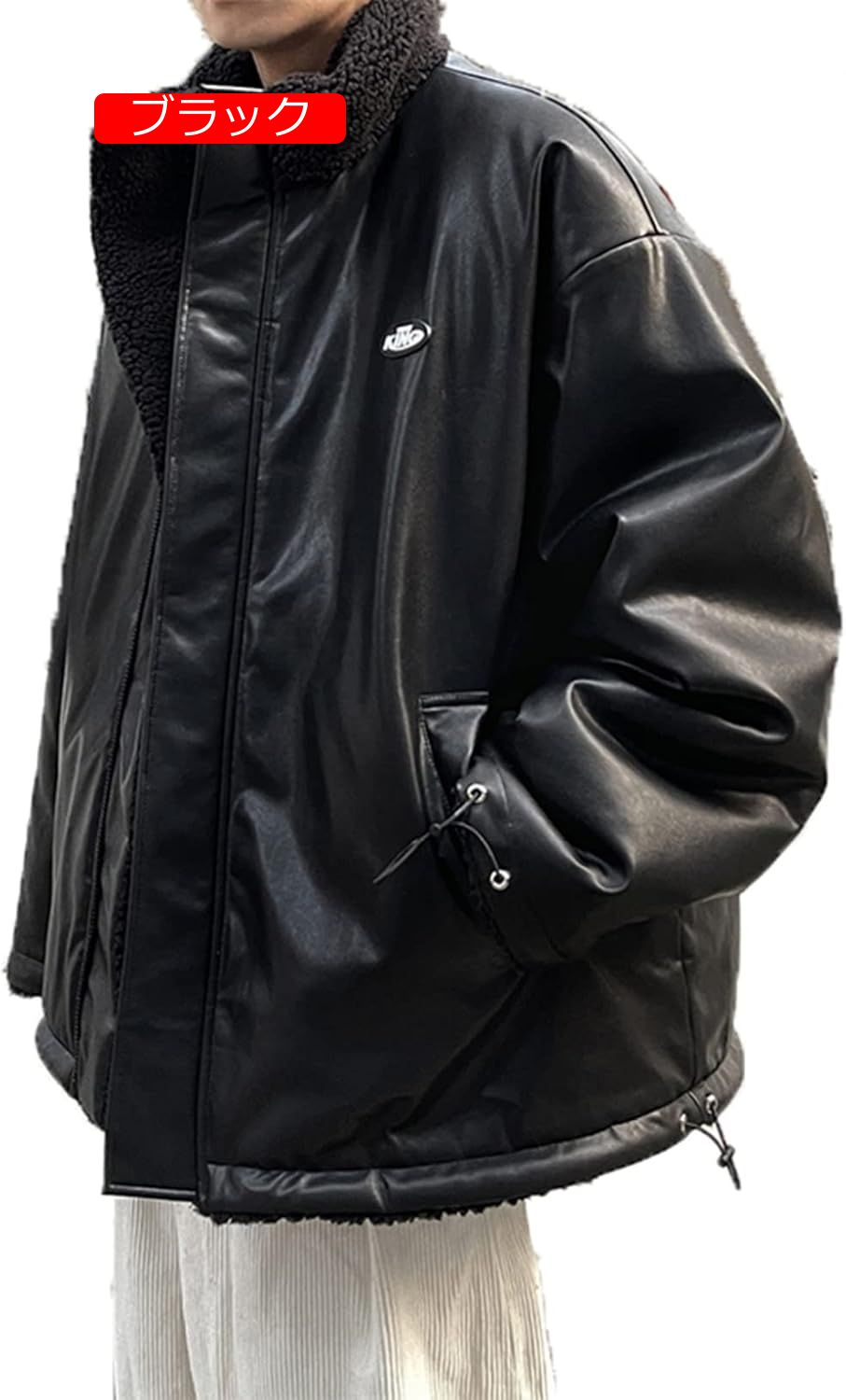 両面着 ボアブルゾン ボアジャケット メンズ フルジップ 撥水 リバーシブル 秋冬服 カジュアル コート 厚手 保温 暖かい グリーン ホワイト ブラック 無地 シンプル フリース ウインド