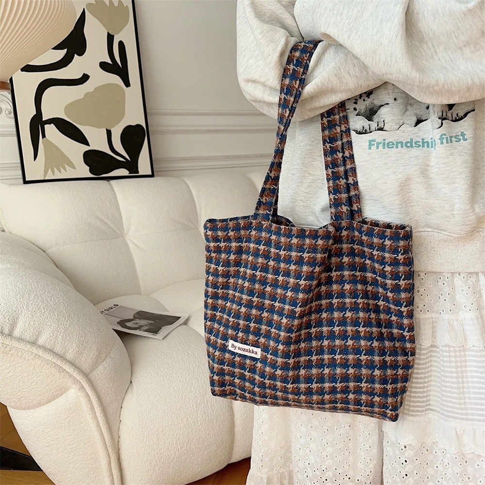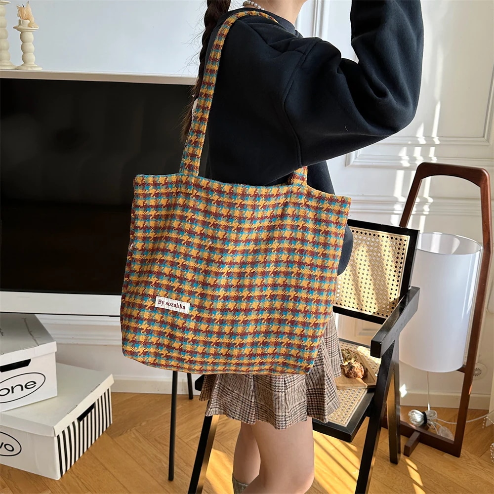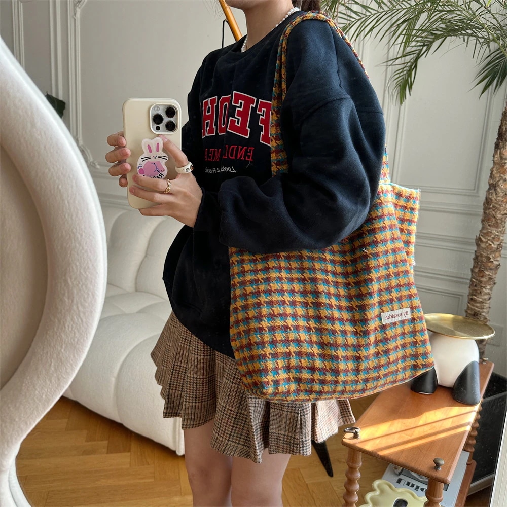 2025 エコバッグ 大容量 インス キャンバスバッグ レディース ツイード カジュアル トートバック 韓国ファッション エコバッグ