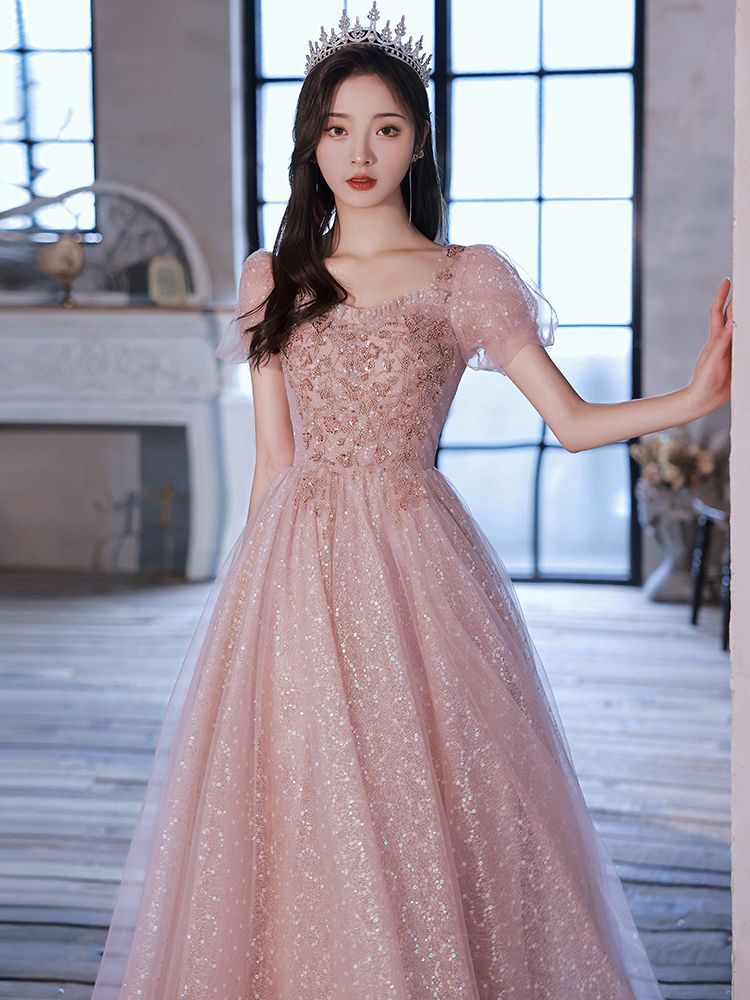 ピンクのイブニングドレス女宴会気質高級感司会者ロング生日会 結婚式 演奏会 発表会 卒業式 成人式 同窓会 ドレス ドレス