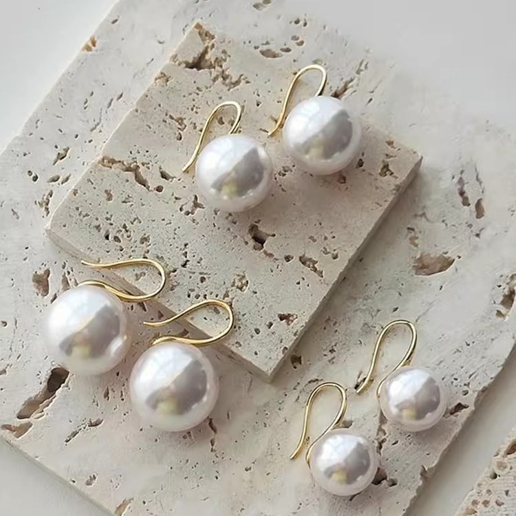 ピアス 16 mm大パールイヤーフック14 kゴールドピアスレトロな雰囲気の秋人気のピアス ピアス