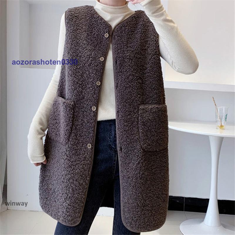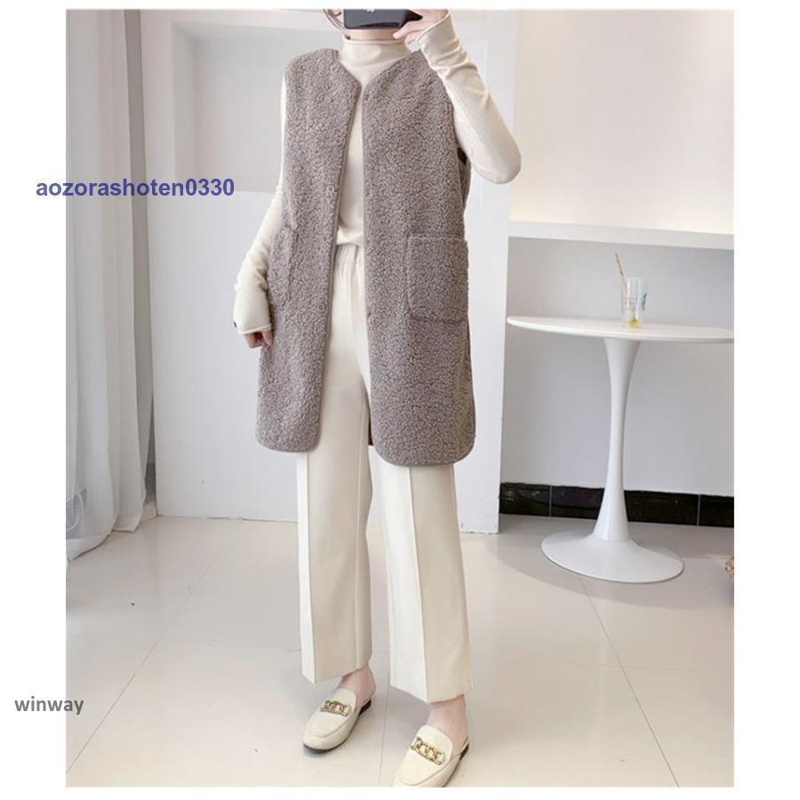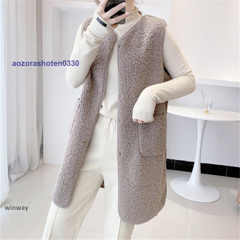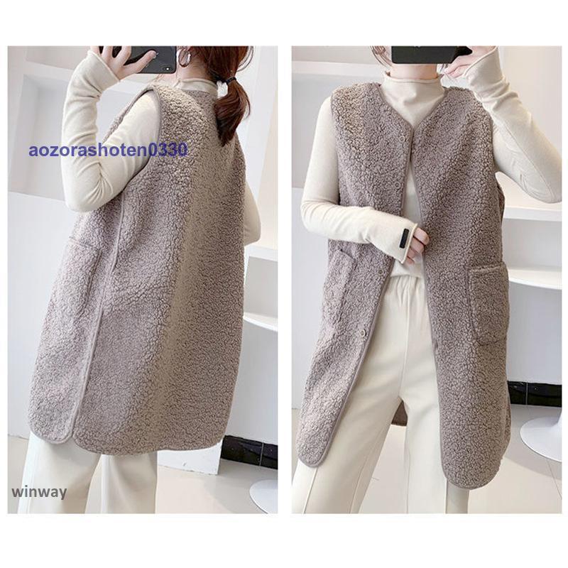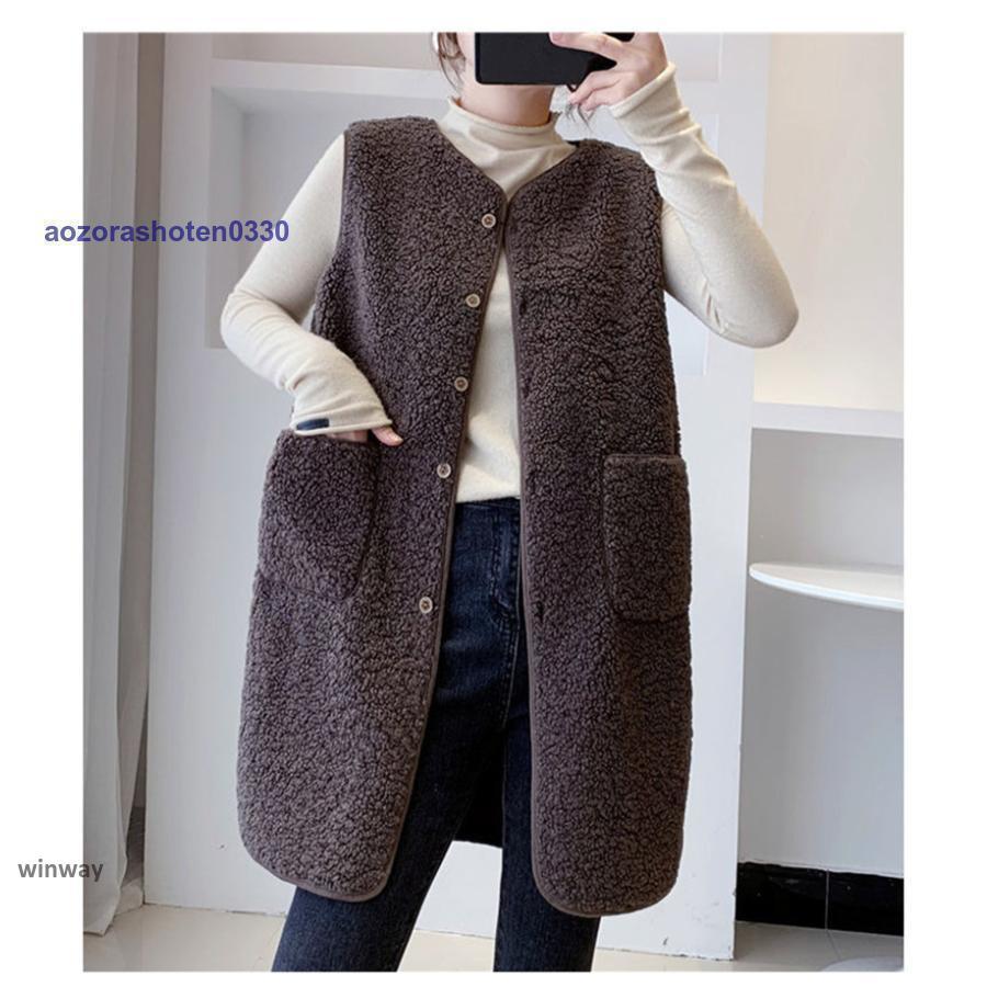 ボアベスト レディース フリースベスト ロング ジャケット コート アウター 前開き チョッキ もこもこ 保温 防寒 暖かい 秋冬 着痩せ 通勤 通学