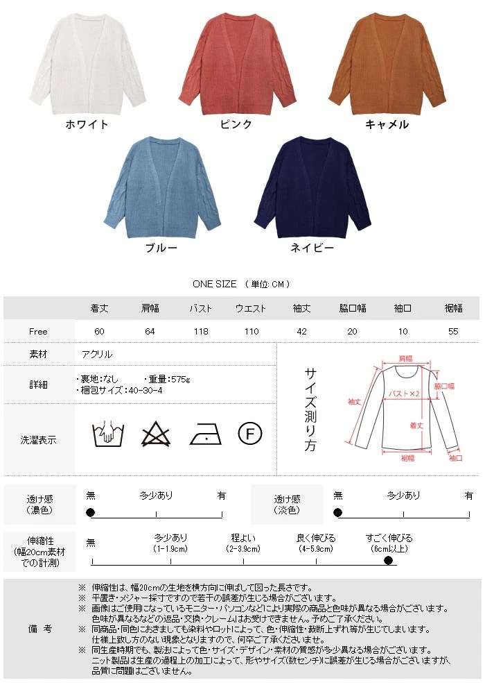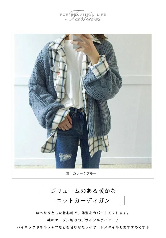 カーディガン レディース 秋 冬 秋冬 ニットカーディガン ケーブル編み コーディガン アウター ケーブルニット ゆったりカーディガン ホワイト ネイビー ブルー キャメル ピンク ボリューム オ