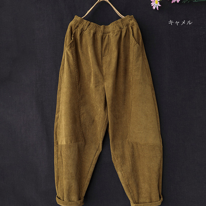 サルエルパンツ レディース 冬 パンツ コーデュロイ ワイド ロングパンツ ウエストゴム 秋冬 パンツ ロング コクーン タックパンツ パンツ きれいめ ボトムス テーパードパンツ ハロンパンツ ハイ