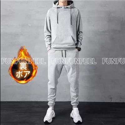 ジャージ メンズ 上下 スウェット上下 セットアップ 上下セット 裏ボア 裏起毛 プルオーバー 前開き 部屋着 ウエア トレーニングウェア 秋服 冬 長袖