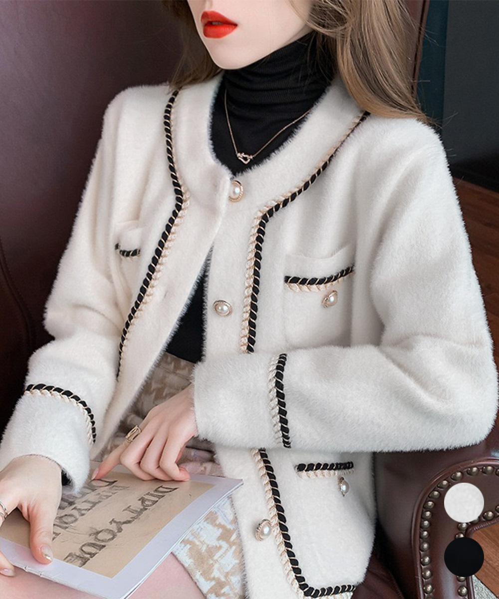 人气 新作 モヘアカーディガン秋冬 ファージャケット ツイードジャケット