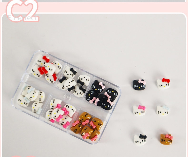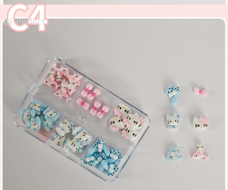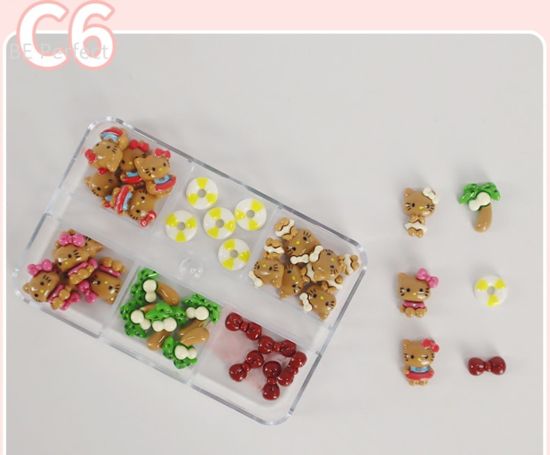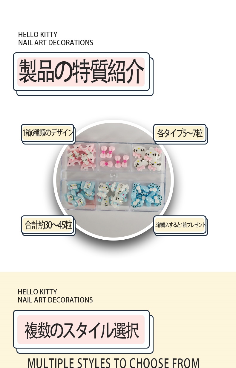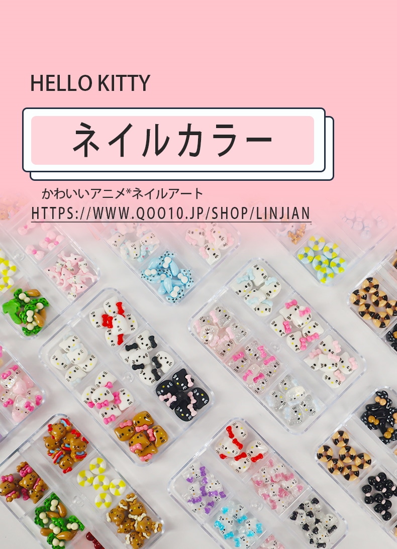 5+1 約30個入 ハローキティ かわいい ジェルネイル ネイルシール ネイルチップ ネイルパーツネイルアート漫画ボックスの装飾 デコパーツ
