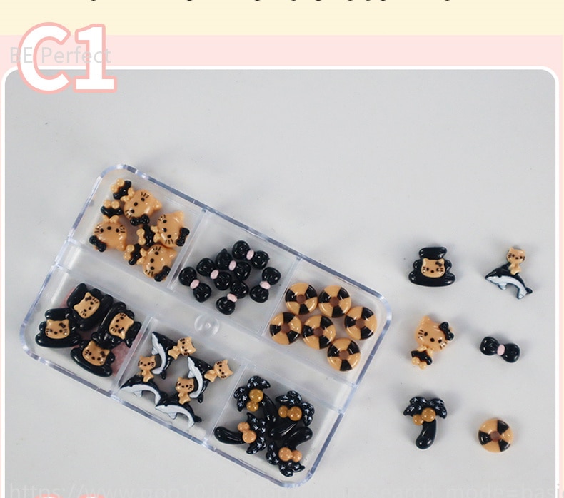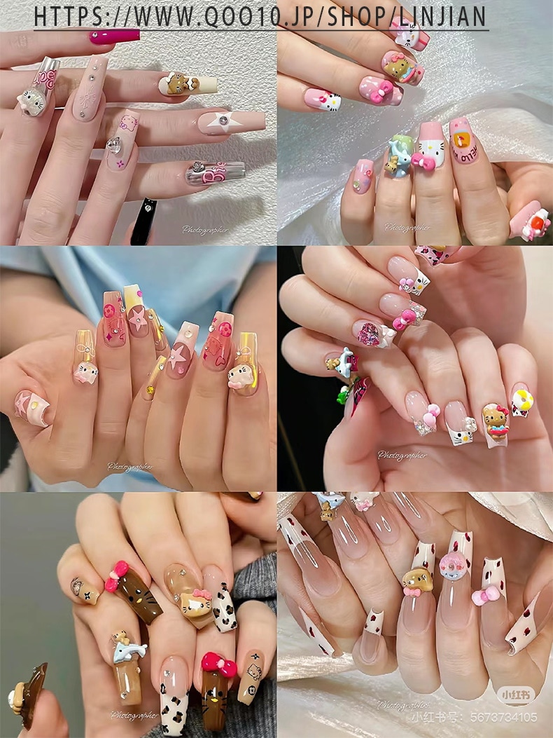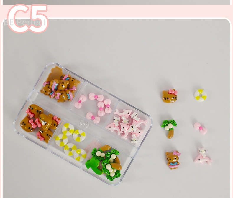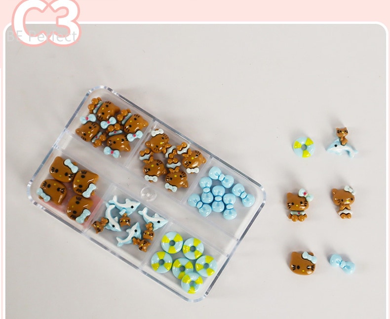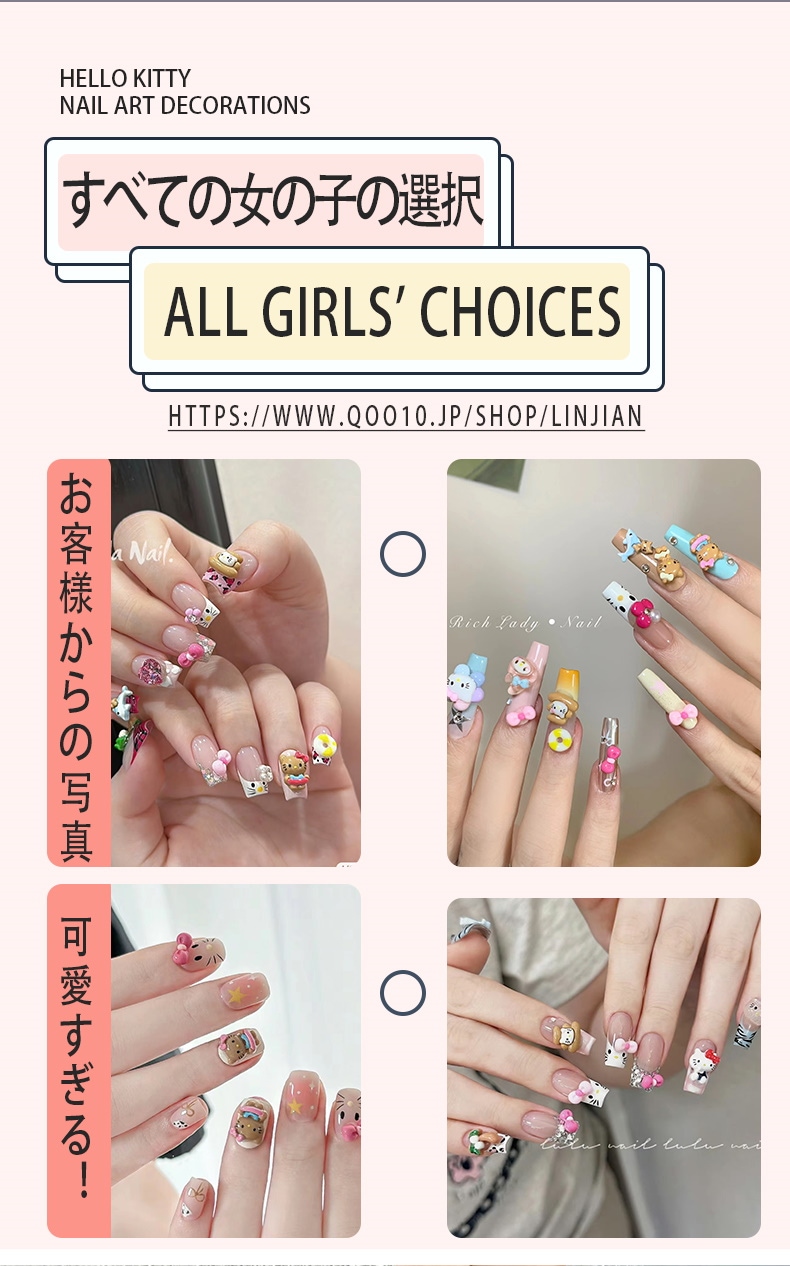 5+1 約30個入 ハローキティ かわいい ジェルネイル ネイルシール ネイルチップ ネイルパーツネイルアート漫画ボックスの装飾 デコパーツ