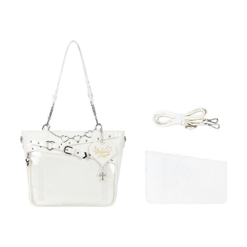 痛バッグ 2024新サブカルチャーペインバッグ大容量透明クロスボディラブチェーンショルダーバッグ トートバッグ