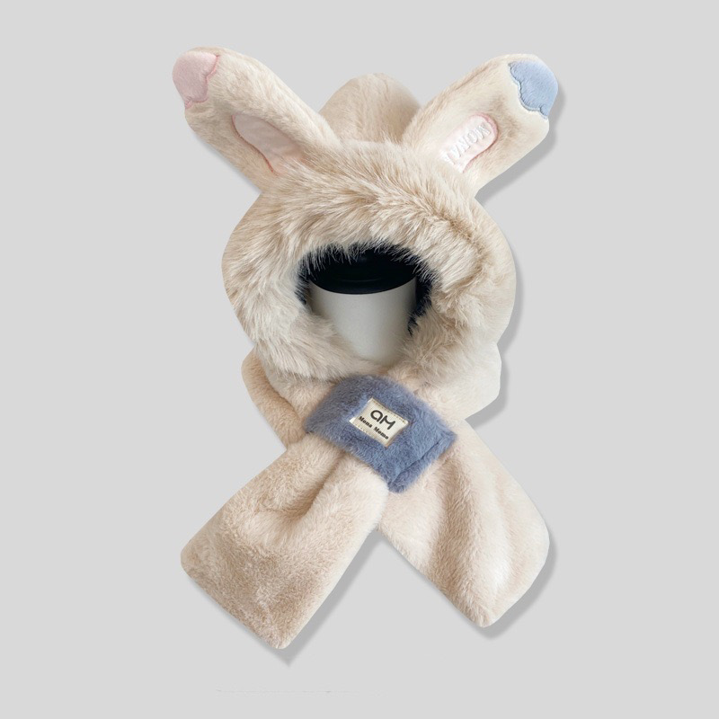 冬用の可愛いウサギ耳つきモフモフのフードとセットの韓国風の暖かい耳を守る防風性なニット帽です加わった毛が厚くどんなスタイルにも合わせやすい百搭アイテムですかぶせ式のデザインで快適に装着いた