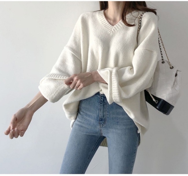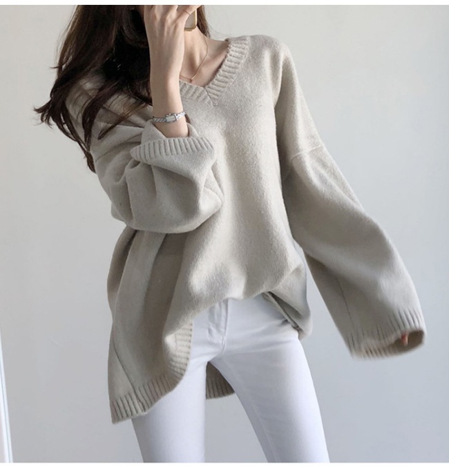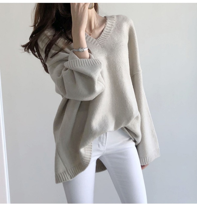 ニット パーカー トップス レディース Vネック ゆったり 体型カバー 長袖 春 秋冬 長袖 無地 カジュアル オフィス シルエット ニット