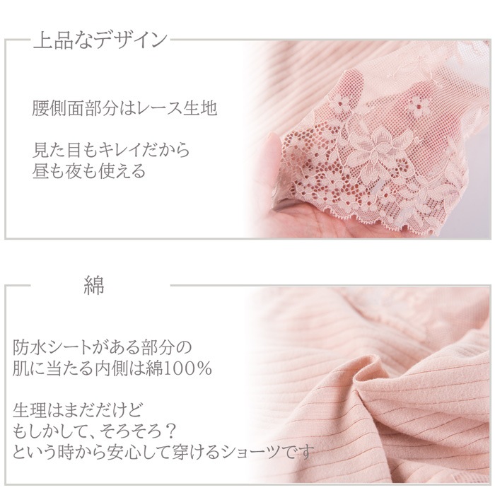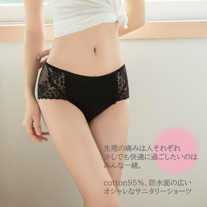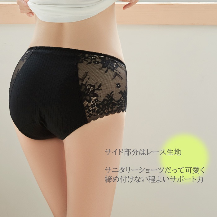 サニタリーショーツ 生理 綿 レディース レース 昼夜用 ナイト 多い日 ロング しっかり生地 防水布 深穿き 夏 通気性 大きい M-4L s609