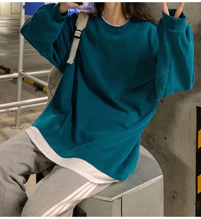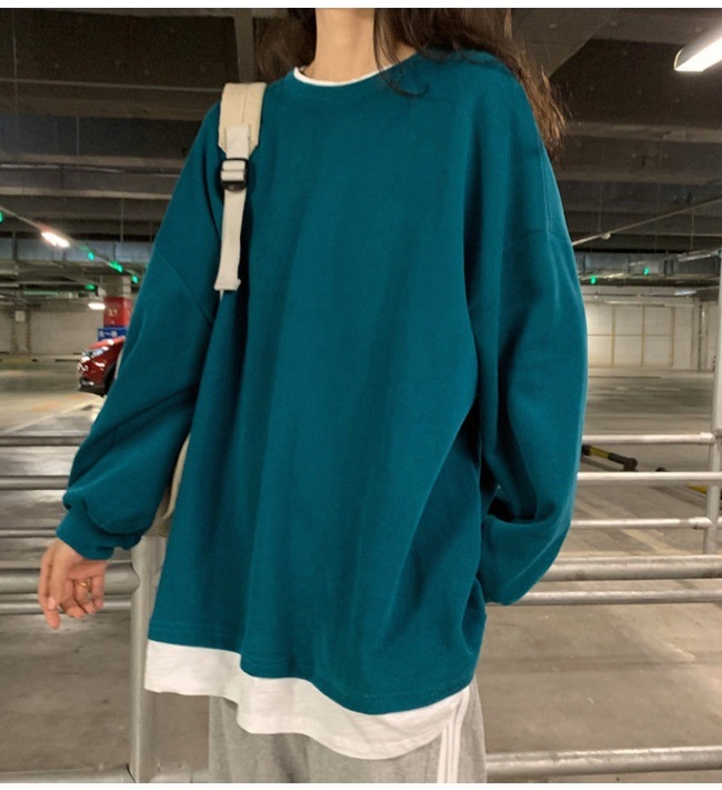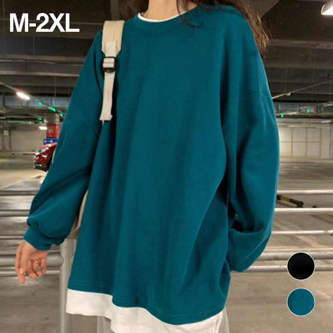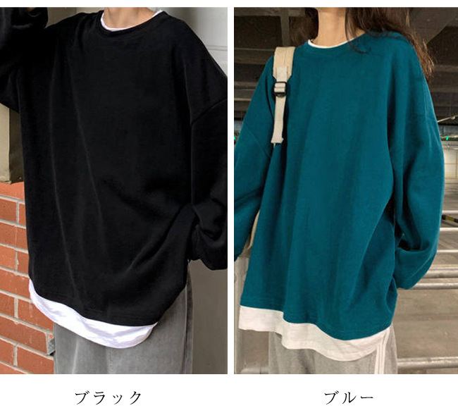 パーカー オーバー レディース 重ね着風 長袖 無地 ゆったり 大きめ 春 秋 おしゃれ レディス ティーシャツ オシャレ パーカー