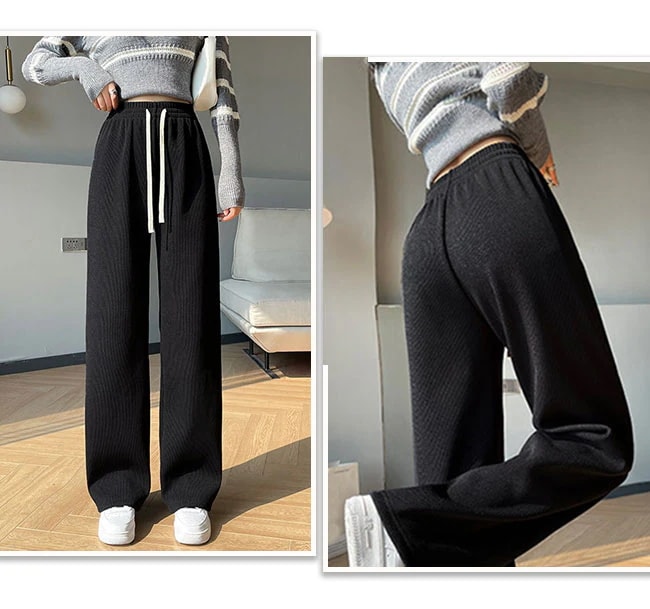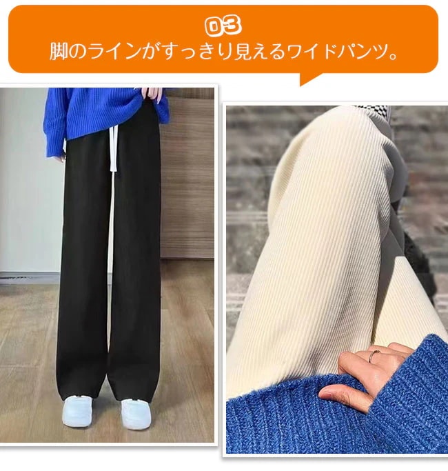 裏起毛ワイドパンツ レディース リブ ボア ガウチョパンツ ボトムス ウエストゴム ロングパンツ カジュアル 体型カバー 防寒 秋冬 暖かい