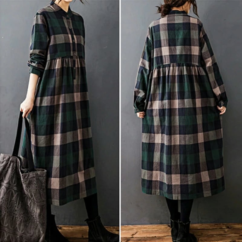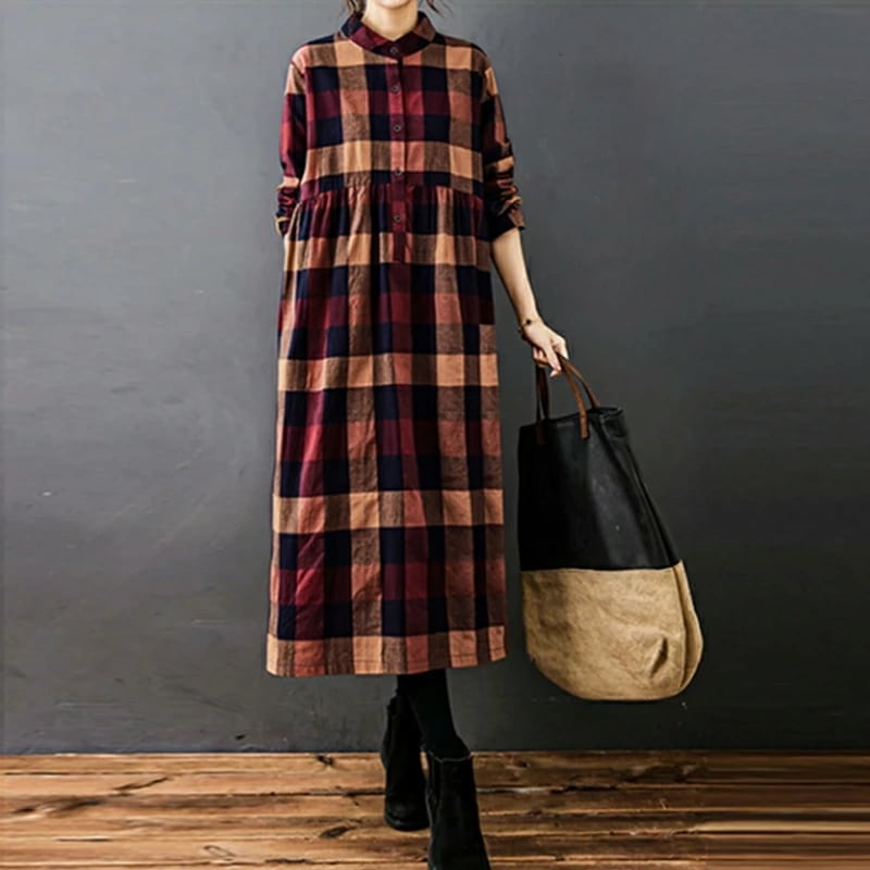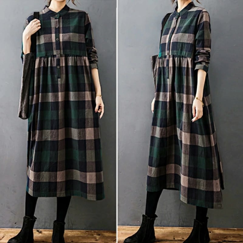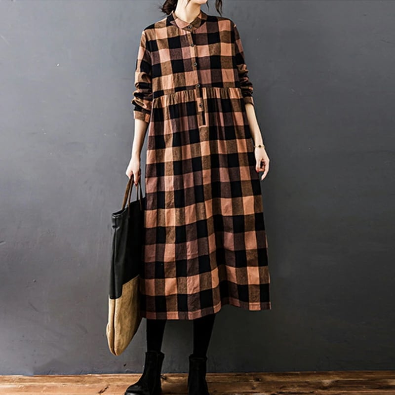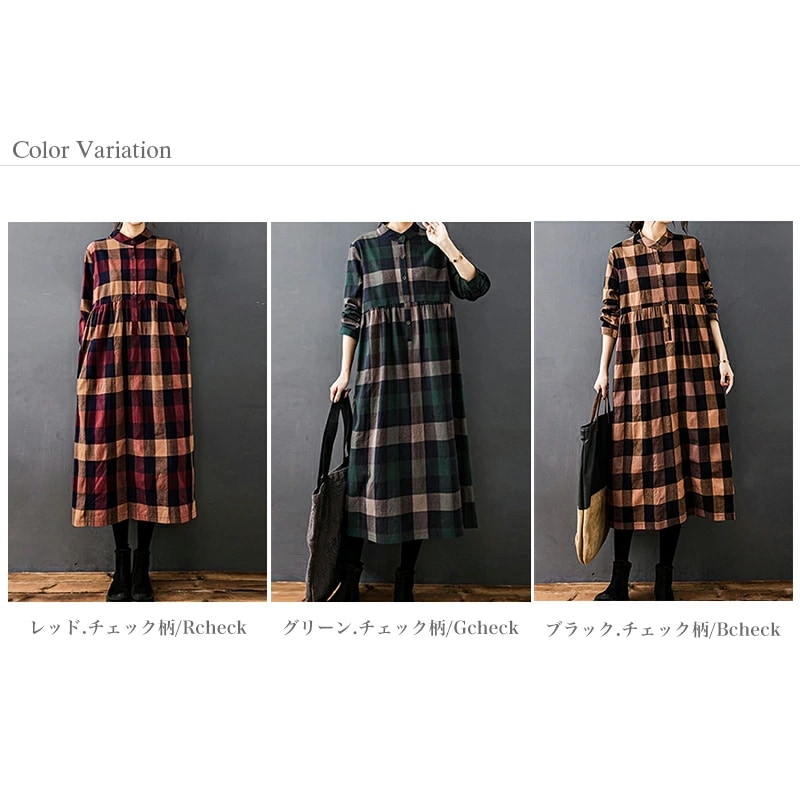 シャツワンピース チェック柄 ロングワンピース シャツ ワンピース 長袖 レディース チェック ロング丈 大きいサイズ 体型カバー ゆったり チェックワンピース