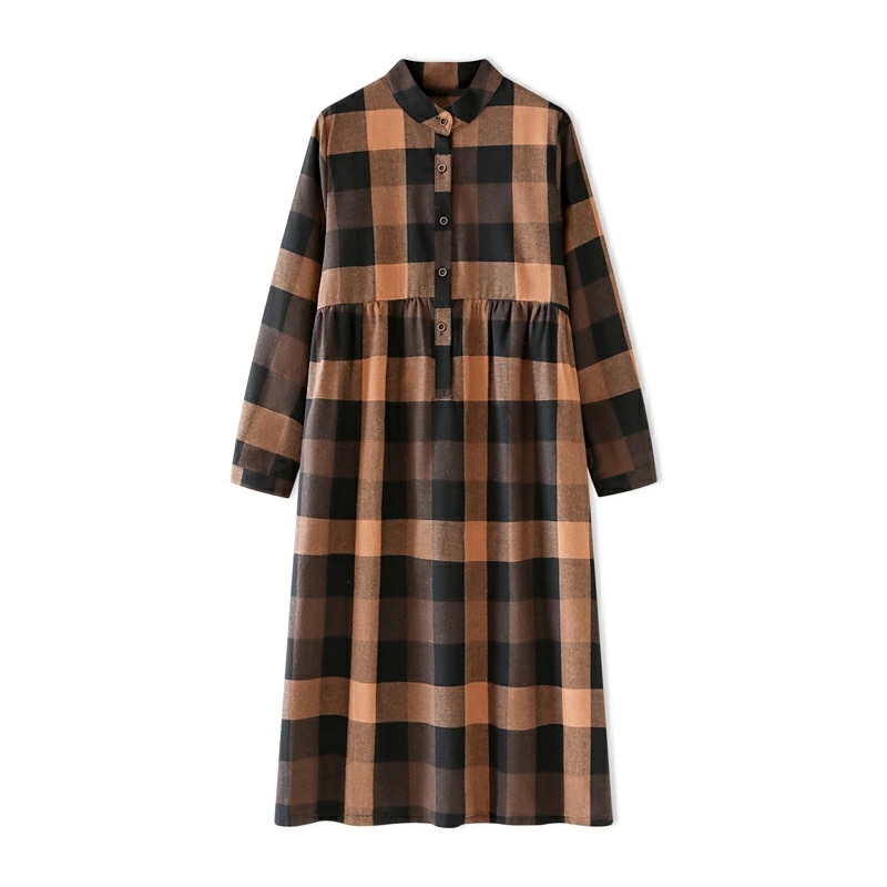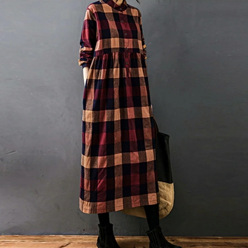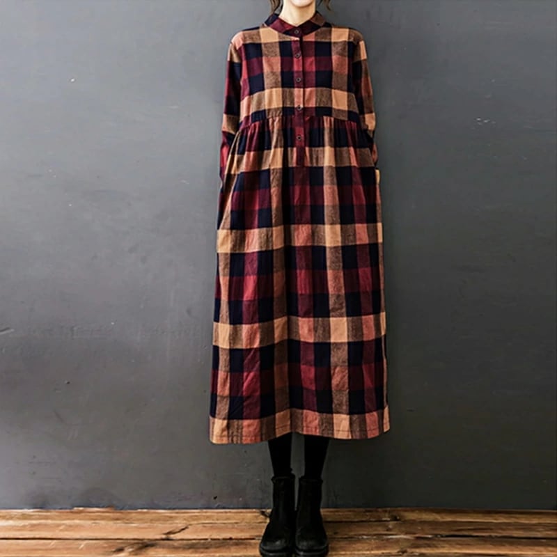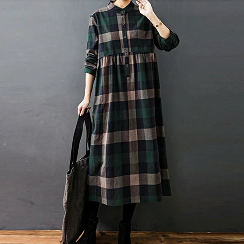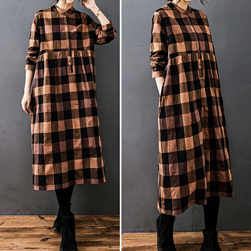 シャツワンピース チェック柄 ロングワンピース シャツ ワンピース 長袖 レディース チェック ロング丈 大きいサイズ 体型カバー ゆったり チェックワンピース