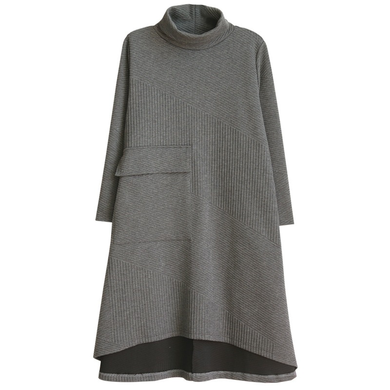 ロングワンピース レディース ストライプ ハイネック ゆったり 体型カバー 着痩せ ポケット付き 立ち襟 Aライン 普段着 可愛い お洒落 カジュアル 保温 通勤 秋 冬
