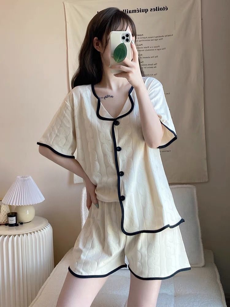 パジャマ 女性 夏 半袖 ショートパンツ 薄手 カーディガン ホームウェア スーツ パジャマ